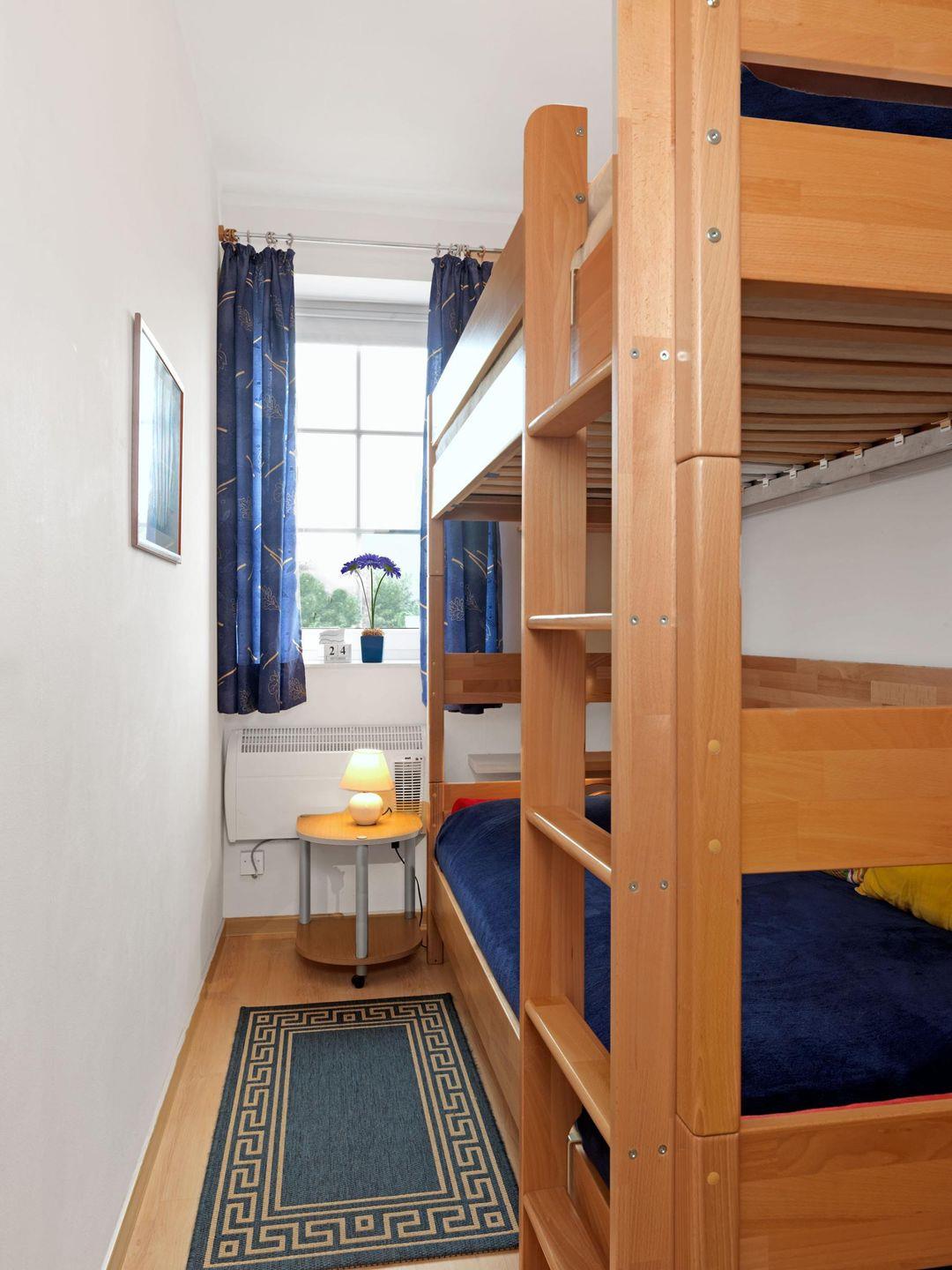 Diese Wohnung verfügt über ein Schlafzimmer mit Doppelbett sowie ein kleines Schlafzimmer mit Etagenbett.