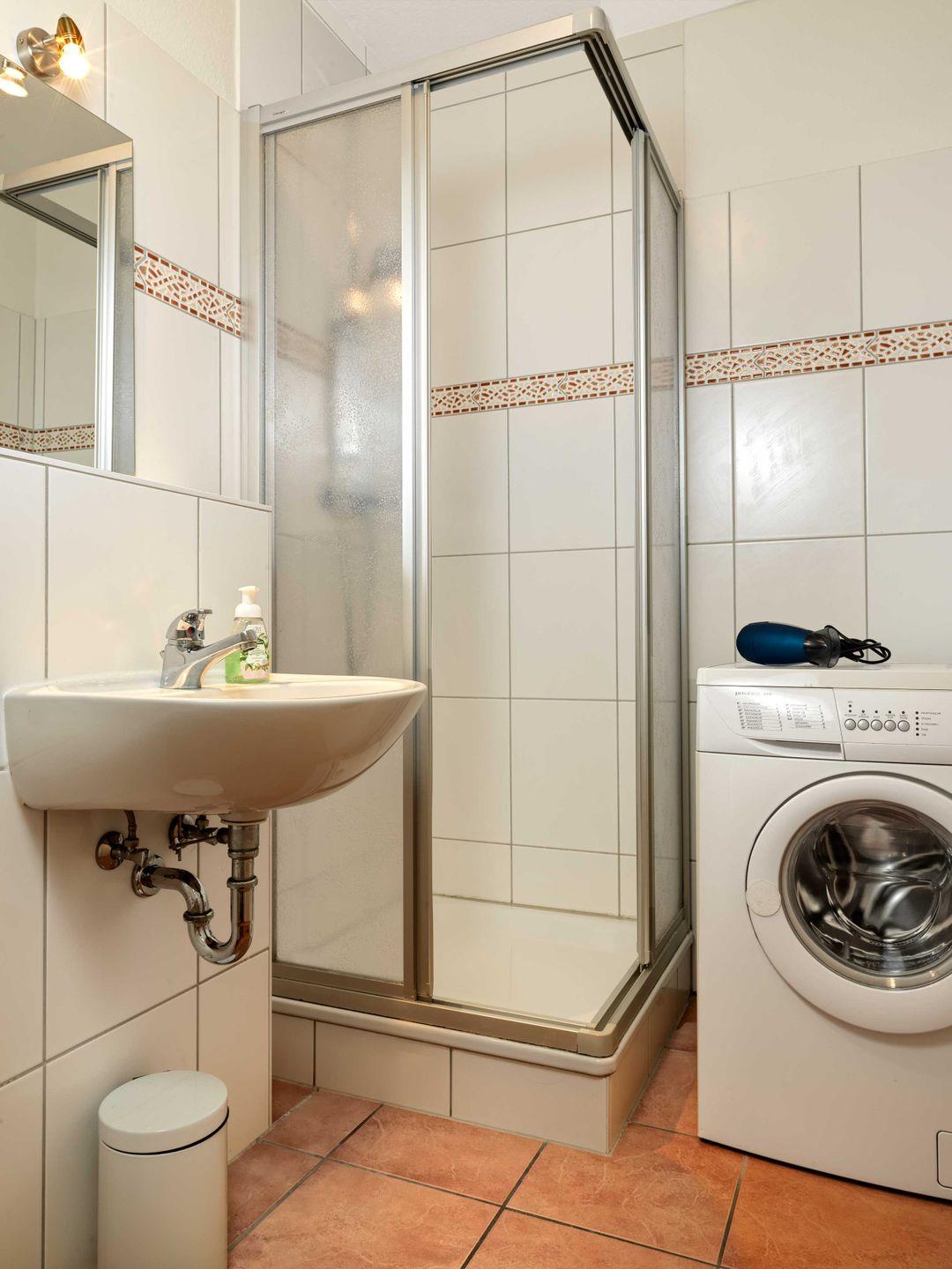 Ein Duschbad mit WC ist im Erdgeschoss und ein weiteres großes Bad mit Sauna, Dusche und WC im Obergeschoss verkürzt die kalten Tage.