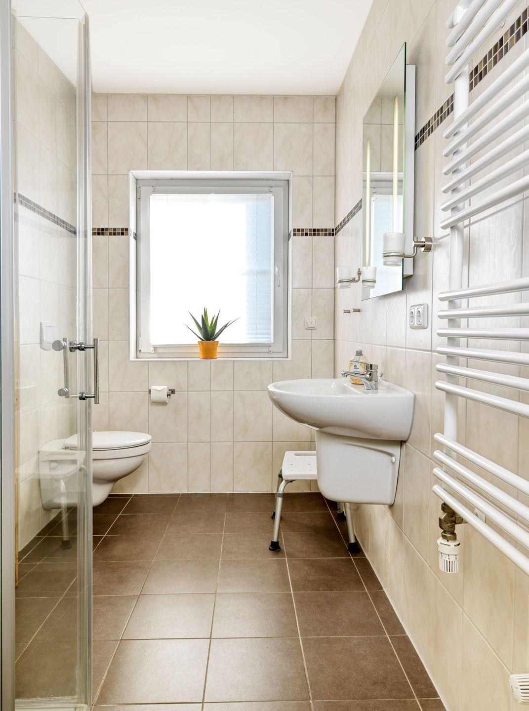 Der gesamte Wohnbereich verfügt über eine Fußbodenheizung.