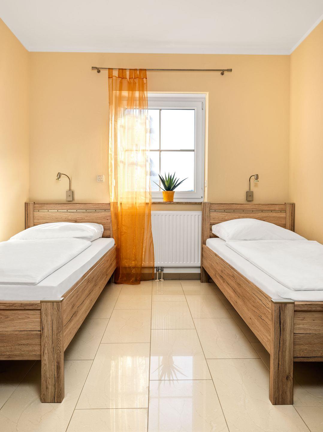 Eines der beiden Schlafzimmer verfügt über ein Doppelbett, das andere Schlafzimmer über zwei Einzelbetten.