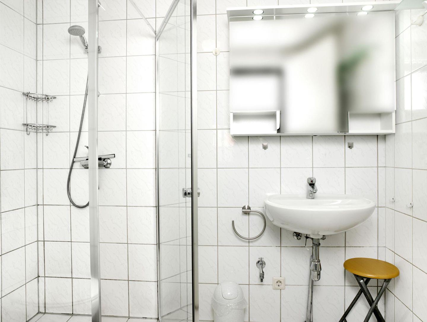 Das Bad ist mit Dusche/WC ausgestattet.