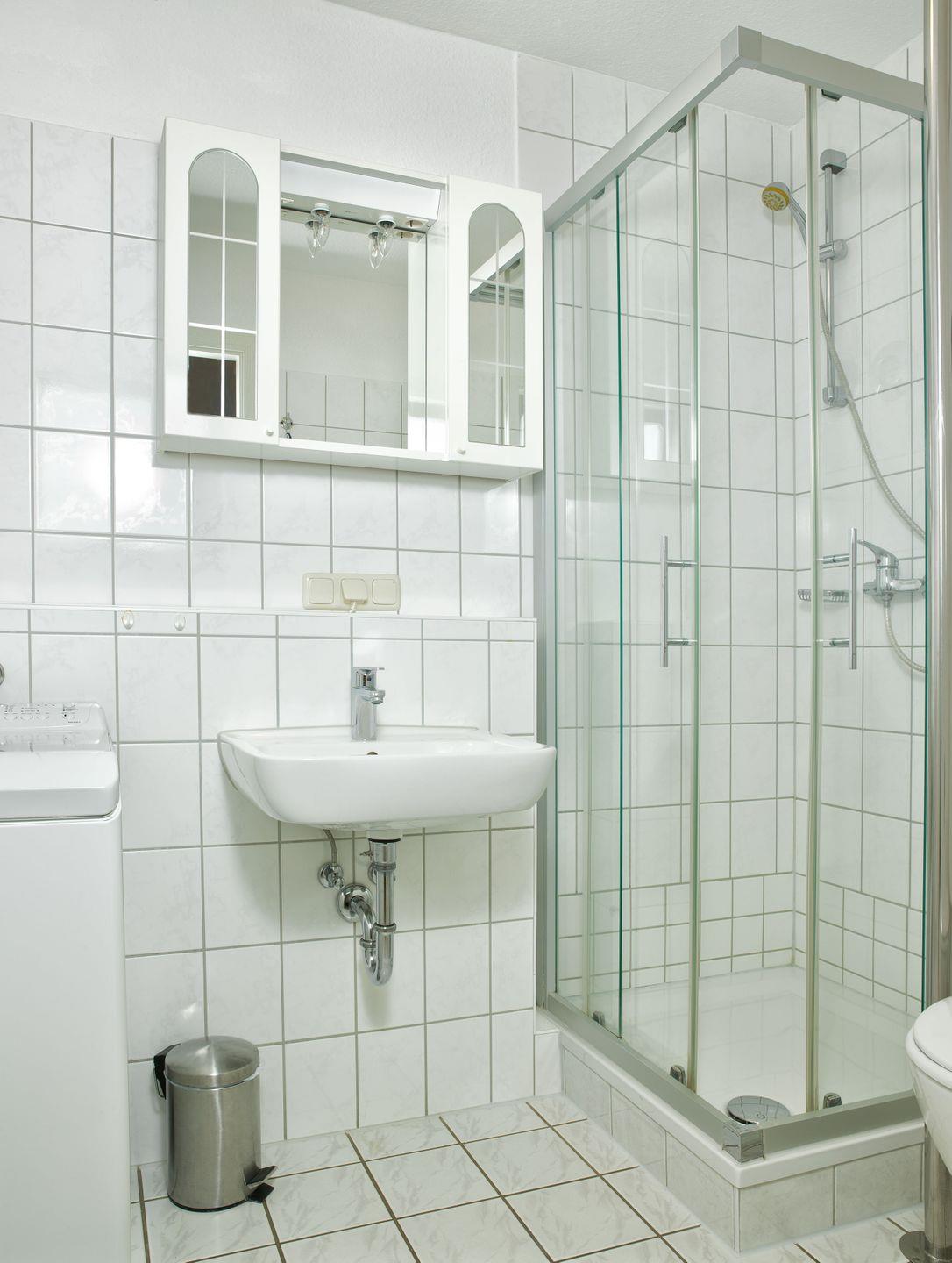 Das Bad ist mit Dusche/WC und Waschmaschine ausgestattet.