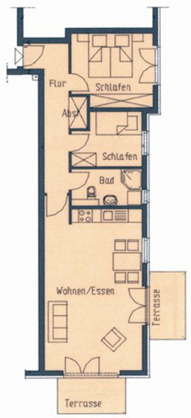 Vom Appartement „Seemöwe“ ist es nur ein Katzensprung bis zum Strand vom Schwarzen Busch. Das Appartement ist 67m² groß und bietet Platz für 4 Personen im Erdgeschoss eines Appartementhauses. Die Wohnung ist ebenerdig und ohne Stufen begehbar. Großer heller Wohn/ Essbereich mit Zugang zu zwei Terrassen (Süd-Osten bzw. Süden). Ein Schlafzimmer ist mit einem Doppelbett ausgestattet, das Zweite mit einem Etagenbett. Das Bad ist mit Fenster, Dusche und WC ausgestattet.