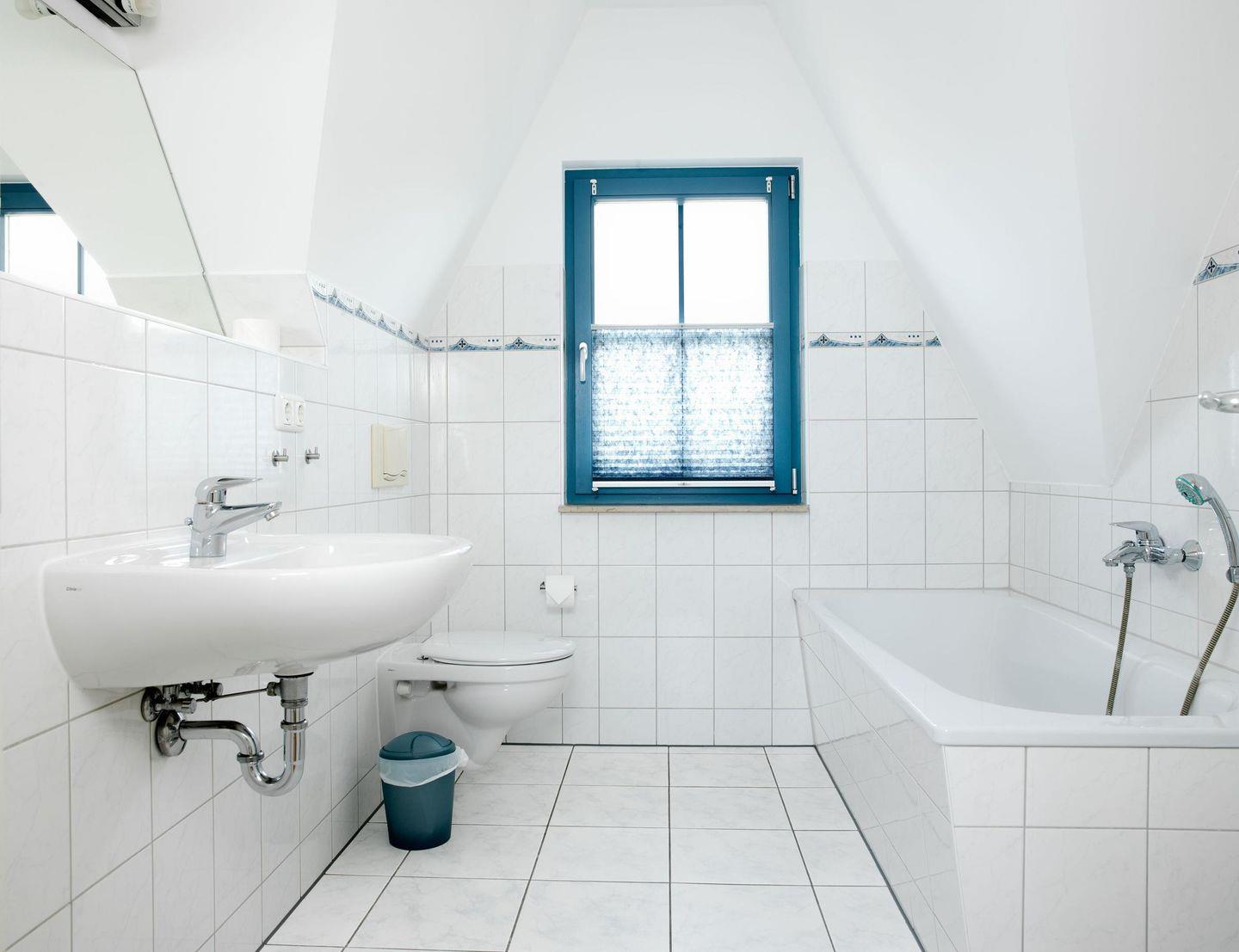 Zusätzlich befindet sich ein großes Bad im OG mit Badewanne, Waschbecken und WC.