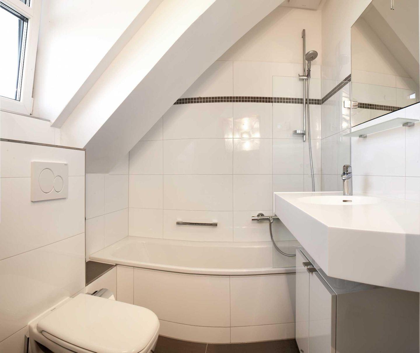 Im OG befindet sich ein Bad mit WC, Föhn, Fußbodenheizung und Badewanne. Für wärmende Momente erwartet Sie außerdem eine Infrarotwärmekabine.