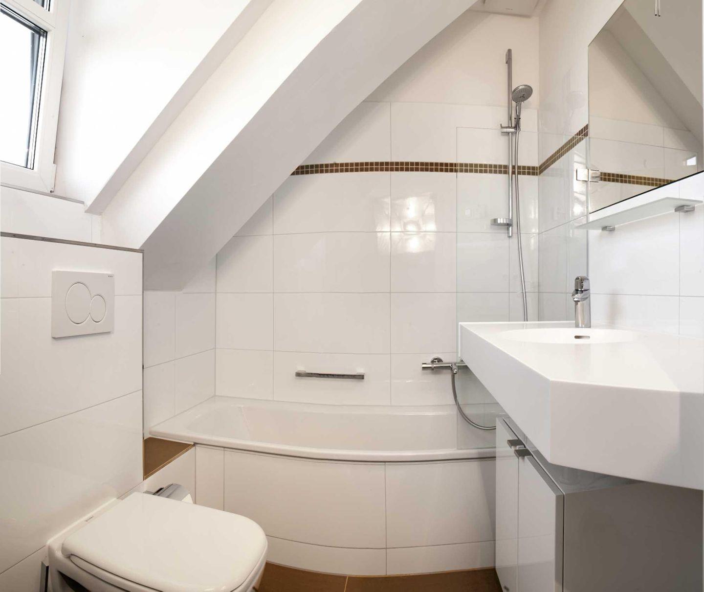 Im OG befindet sich ein Bad mit WC, Föhn, Fußbodenheizung und Badewanne.