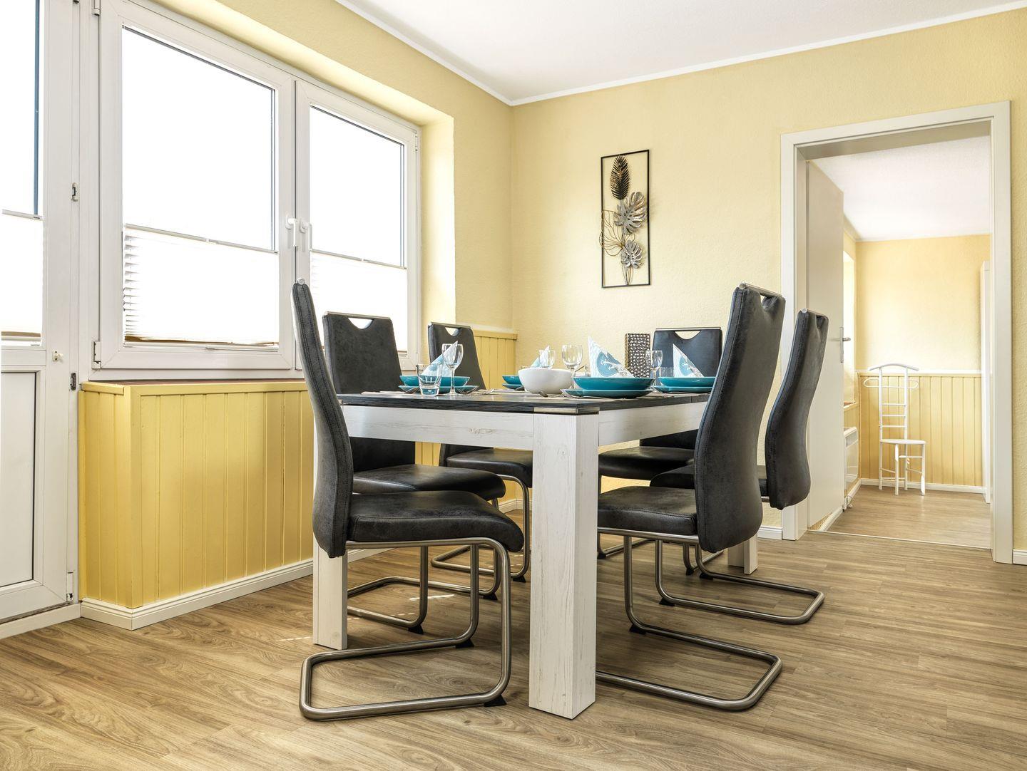 Der große Wohnbereich mit schönem Essplatz, TV und Couchecke bietet Ihnen den Blick ins Grüne Die anschließende Küche mit Mikrowelle, Herd/Backofen, Kühlschrank und vielem mehr macht Ihren Urlaub zu etwas Besonderem.