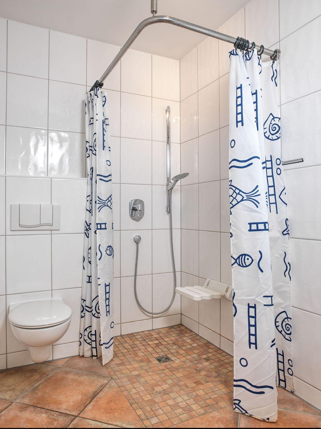 Ein schöner Essbereich mit Blick ins Grüne, ein Bad mit Dusche/WC (ebenerdig), ein Hauswirtschaftsraum mit Waschmaschine und Trockner, sowie eine große Terrasse mit Gartenmöbeln, warten darauf, Ihnen einen herrlichen Urlaub zu bescheren. Das Erdgeschoss ist barrierefrei.