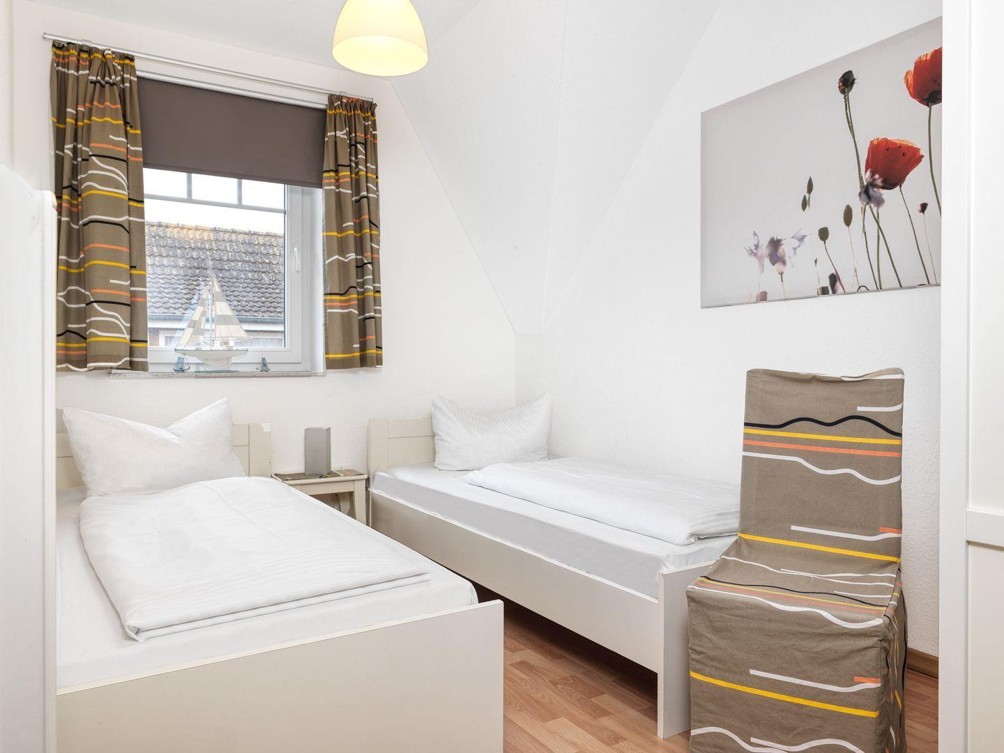 Im Obergeschoss erwarten Sie ein Badezimmer mit Dusche/WC, zwei Schlafzimmer (eines davon mit SAT-TV) mit je zwei Einzelbetten sowie ein Schlafzimmer mit einem Doppelbett für insgesamt 6 Personen.