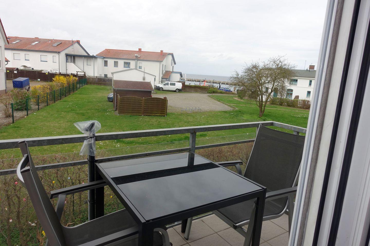 Genießen Sie den Blick auf den Hafen von Timmendorf und riechen und hören Sie das Meer!