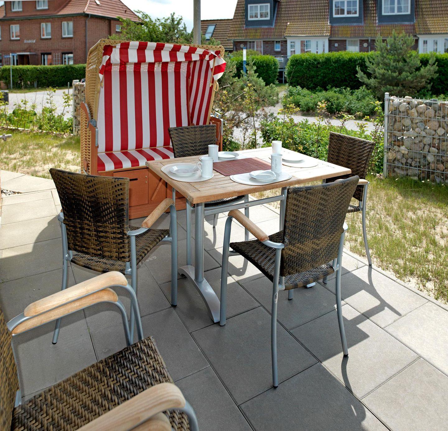 Die Terrasse mit Wasserblick, schönen Terrassenmöbeln sowie einem Strandkorb lädt zu gemütlichen Stunden ein!