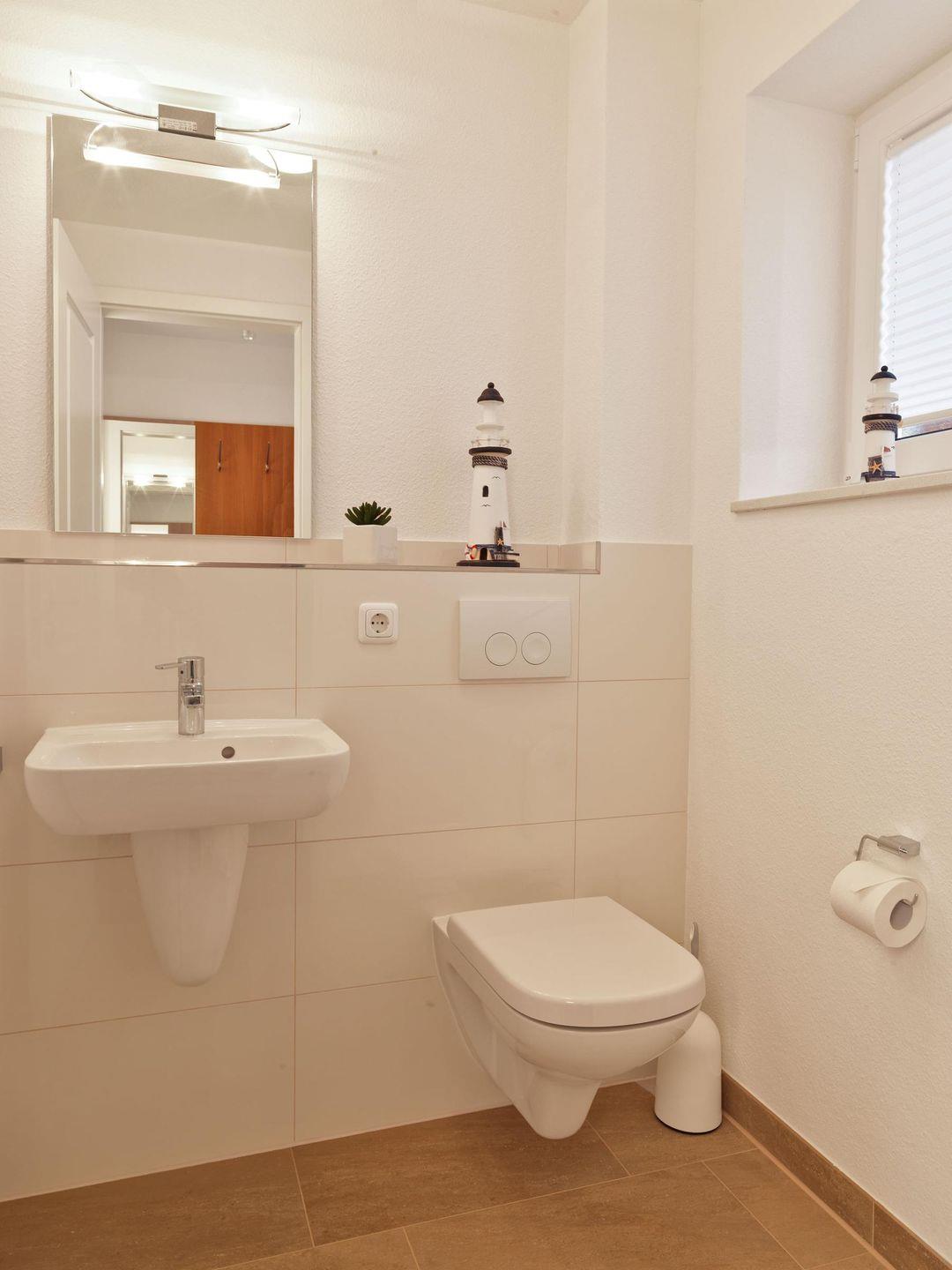 Zwei Schlafzimmer im Dachgeschoß, eins mit Doppelbett, eins mit zwei Einzelbetten unter schrägen Wänden sowie ein Bad mit Dusche lassen bis zu 4 Personen einen entspannten Urlaub verleben.