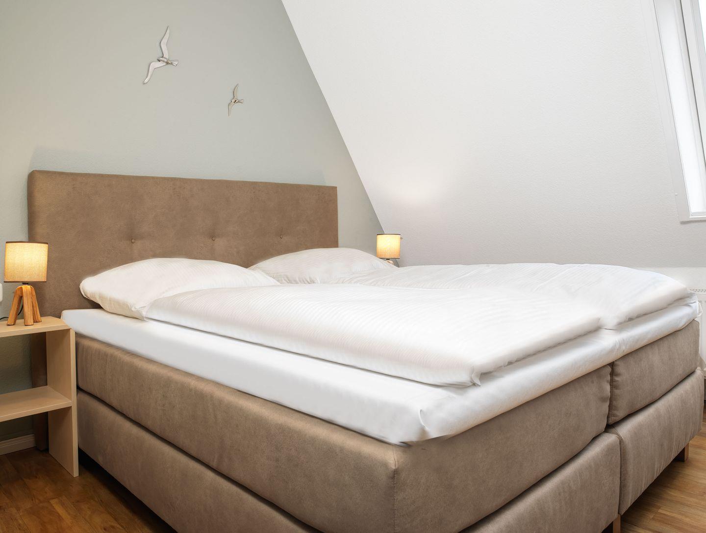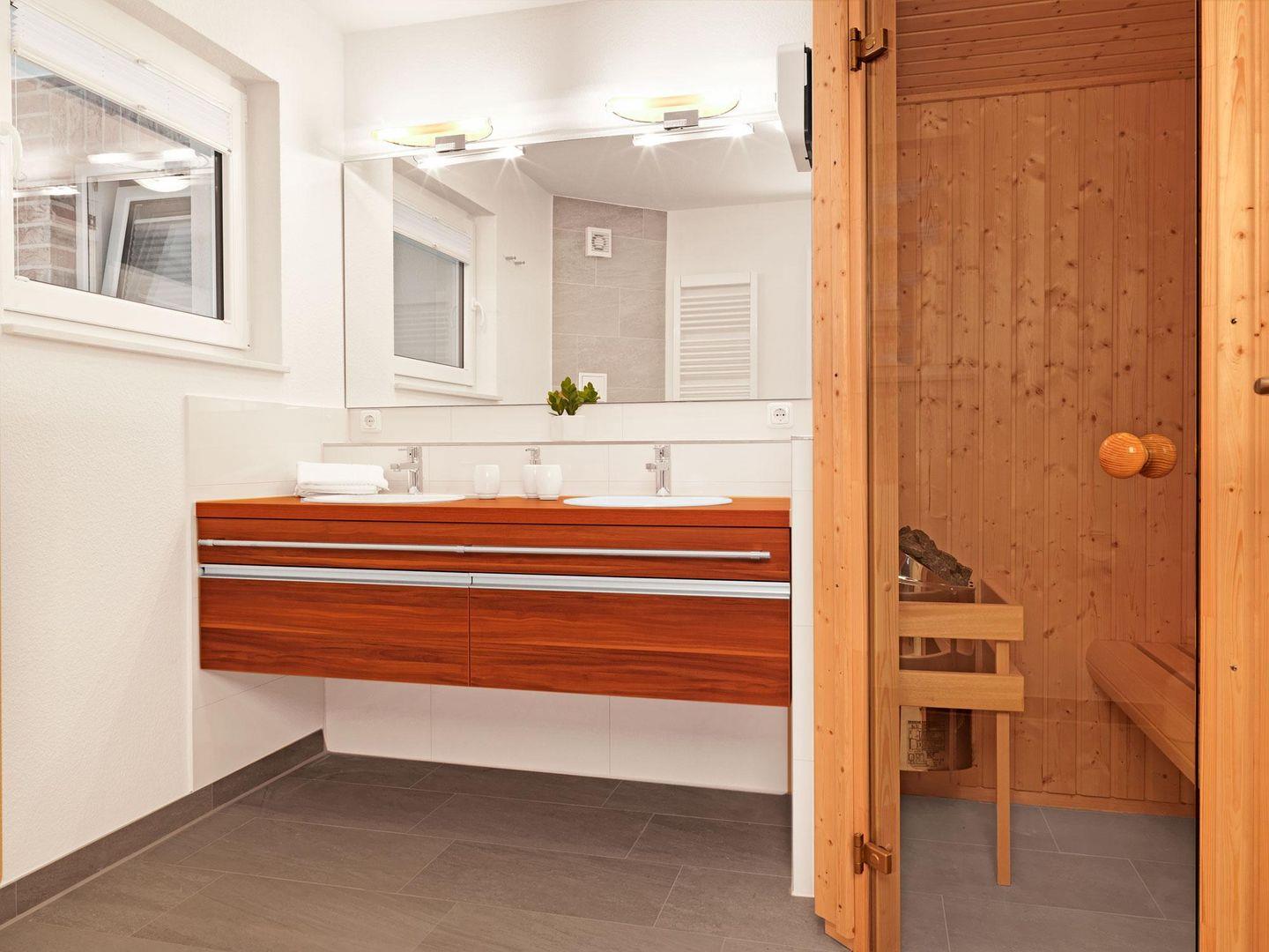 Zwei geräumige Schlafzimmer mit Doppelbetten sowie ein großzügiges Bad mit Sauna und ein Gäste WC lassen bis zu 6 Personen einen entspannten Urlaub verleben.