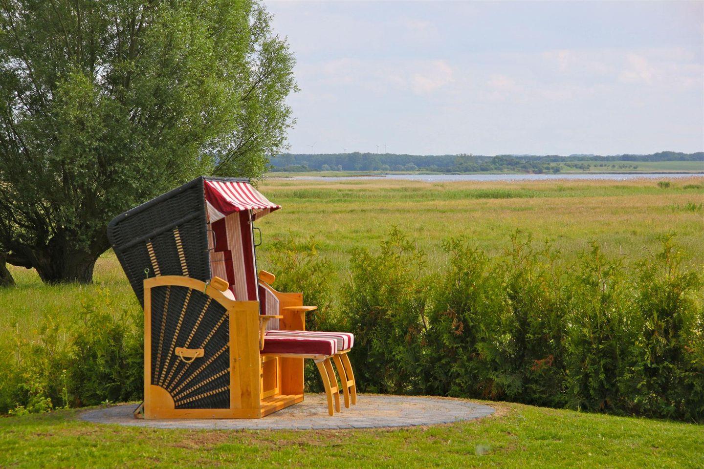Das große Grundstück, welches mit dem Nachbardoppelhaus zusammen genutzt wird, lädt zum Spielen, Verweilen und Grillen ein. Der unverbaubare Blick über das Salzhaff aufs Meer lässt den Alltag vergessen und sorgt umgehend für Entspannung! Nutzen Sie Sonnenstunden in Ihrem Strandkorb am Haus auf einem kleinen, erhöhten Platz.