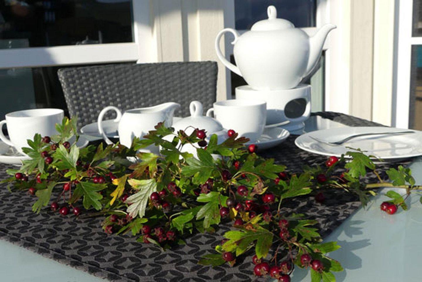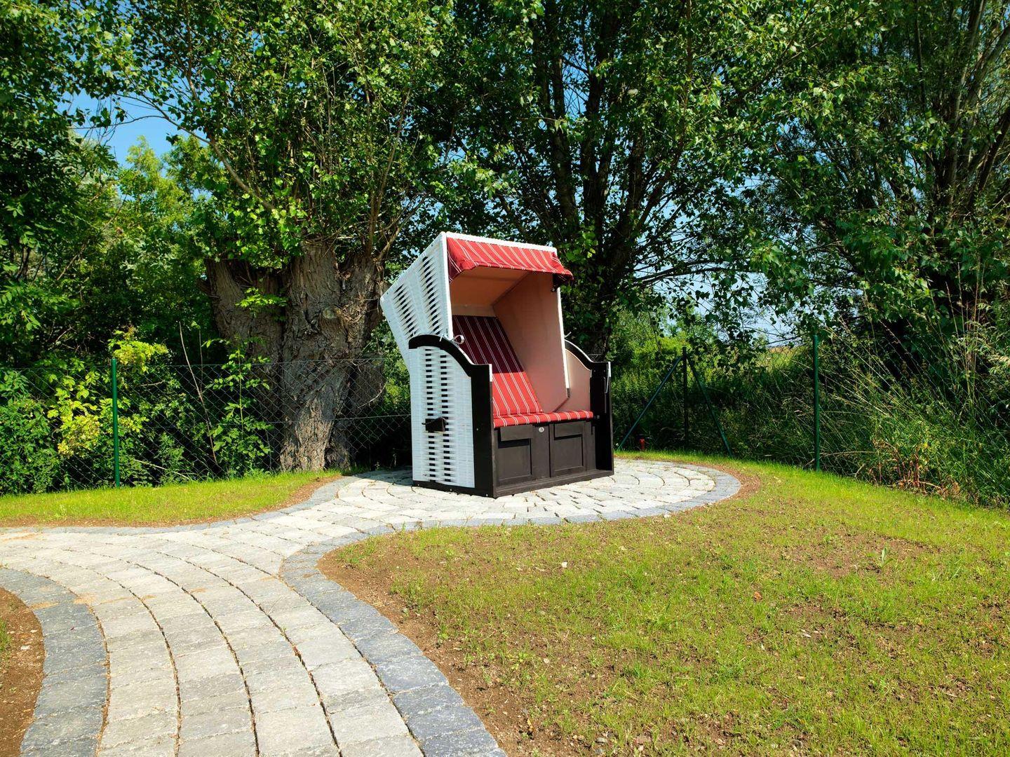 Ideal für Hundebesitzer: Großes, eingezäuntes Grundstück lädt zum Spielen, Verweilen und Grillen ein. Nutzen Sie Sonnenstunden in Ihrem Strandkorb am Haus auf einem kleinen, erhöhten Platz. Kinderreisebett sowie Hochstuhl stehen für unsere kleinen Gäste kostenlos zur Verfügung. Kostenloser W-Lan-Anschluss vorhanden.