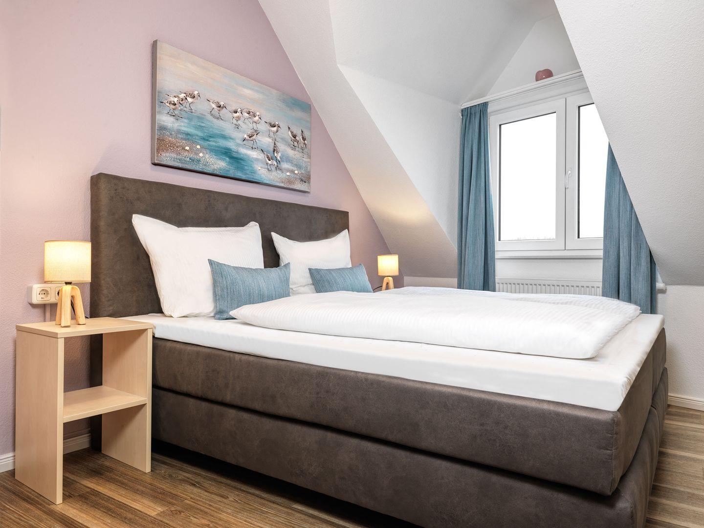 Zwei geräumige Schlafzimmer mit Doppelbetten sowie ein großzügiges Bad und ein Gäste WC lassen bis zu 4 Personen einen entspannten Urlaub verleben.