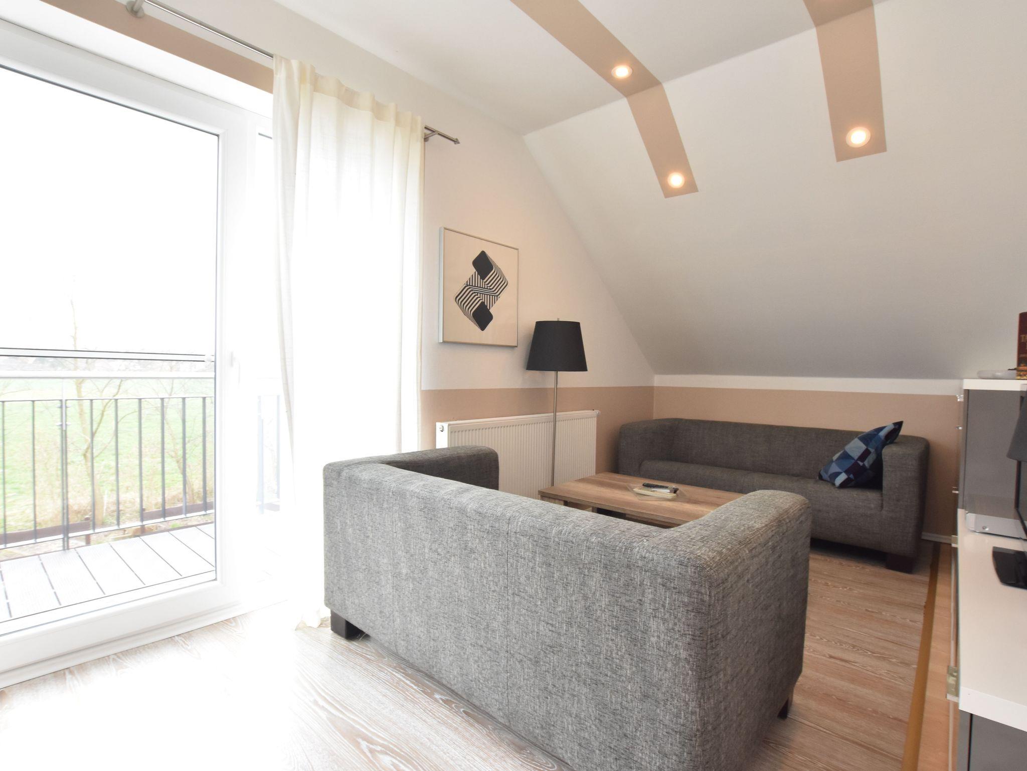 Die gehobene, moderne Ausstattung umfasst einen großen, offen gestalteten Wohnraum mit einer großzügigen Sofaecke, einem langen Tisch, an dem alle Gäste Platz finden sowie eine voll ausgestattete Küche mit Spülmaschine.