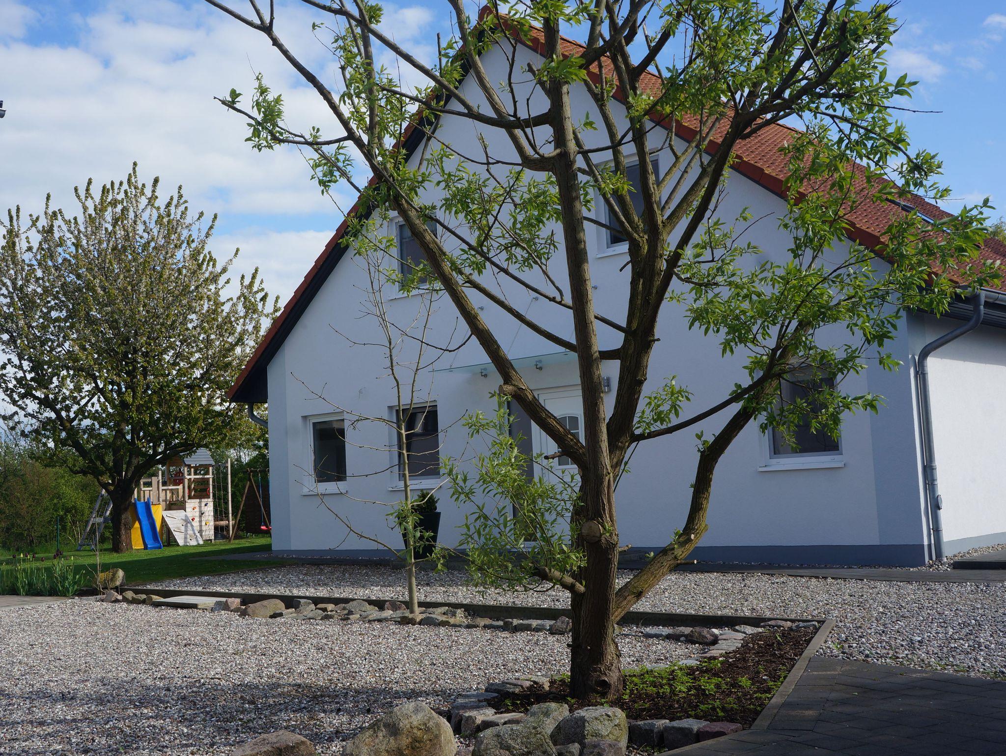 schönem Garten mit Spielgeräten und Grillmöglichkeiten