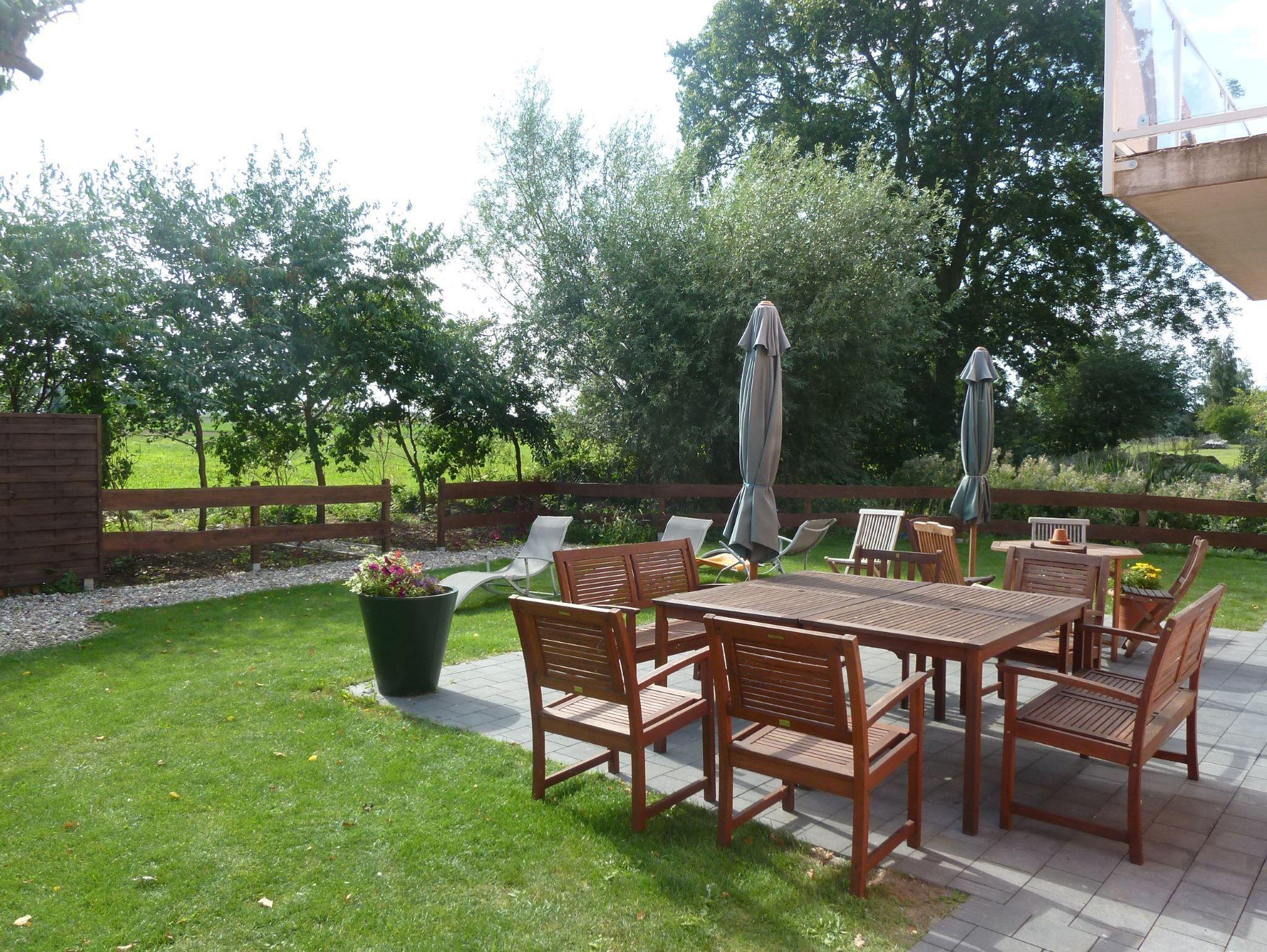 Der Garten grenzt an ein Naturschutzgebiet und ist in Sichtweite zum Breitling (Ostsee) gelegen, so dass Sie die ungestörte Ruhe und den Blick auf die Bucht genießen können.