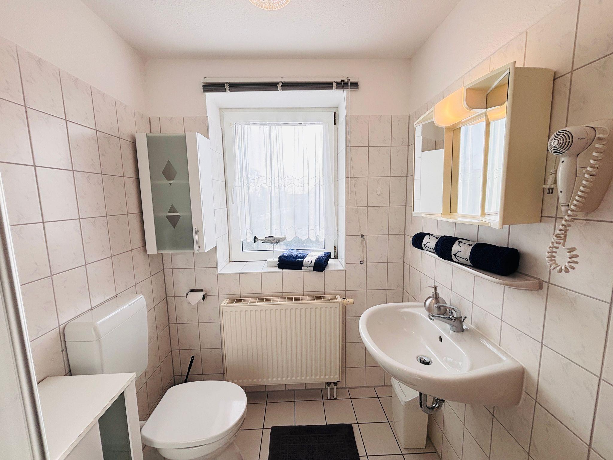 Im Ergeschoss befindet sich ein separates Gäste-WC mit Waschmaschine.