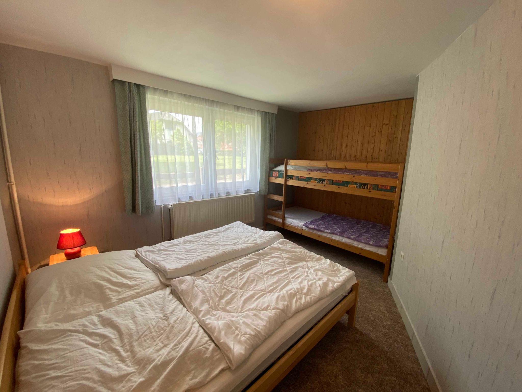• Schlafzimmer mit Doppelbett u. Etagenbett, Kleiderschrank