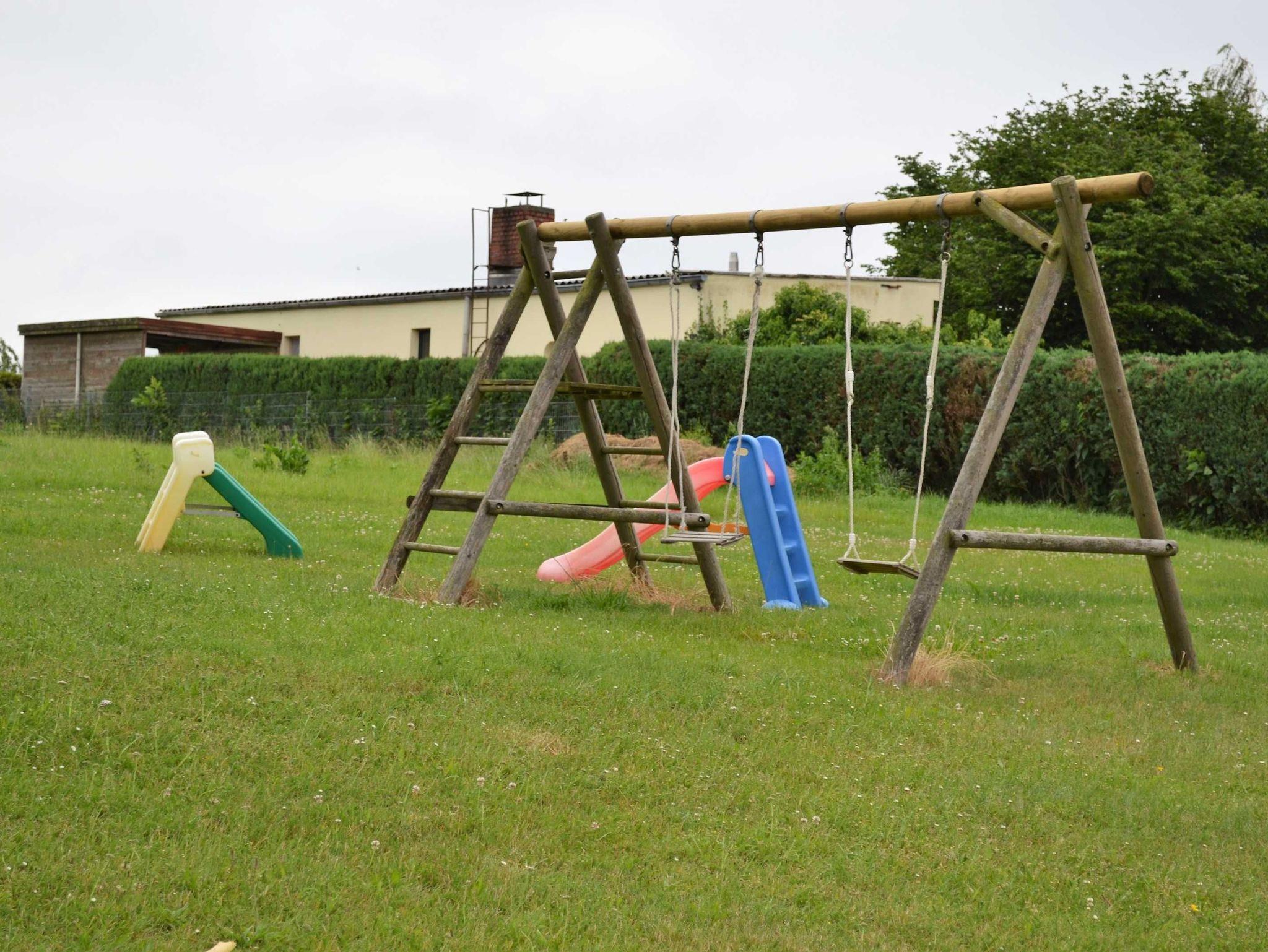 Zum Objekt gehört eine große Spiel- und Liegewiese mit Spielgeräten und Parkplatz.