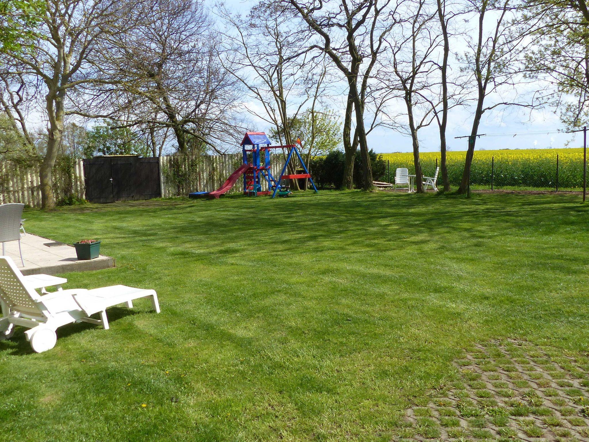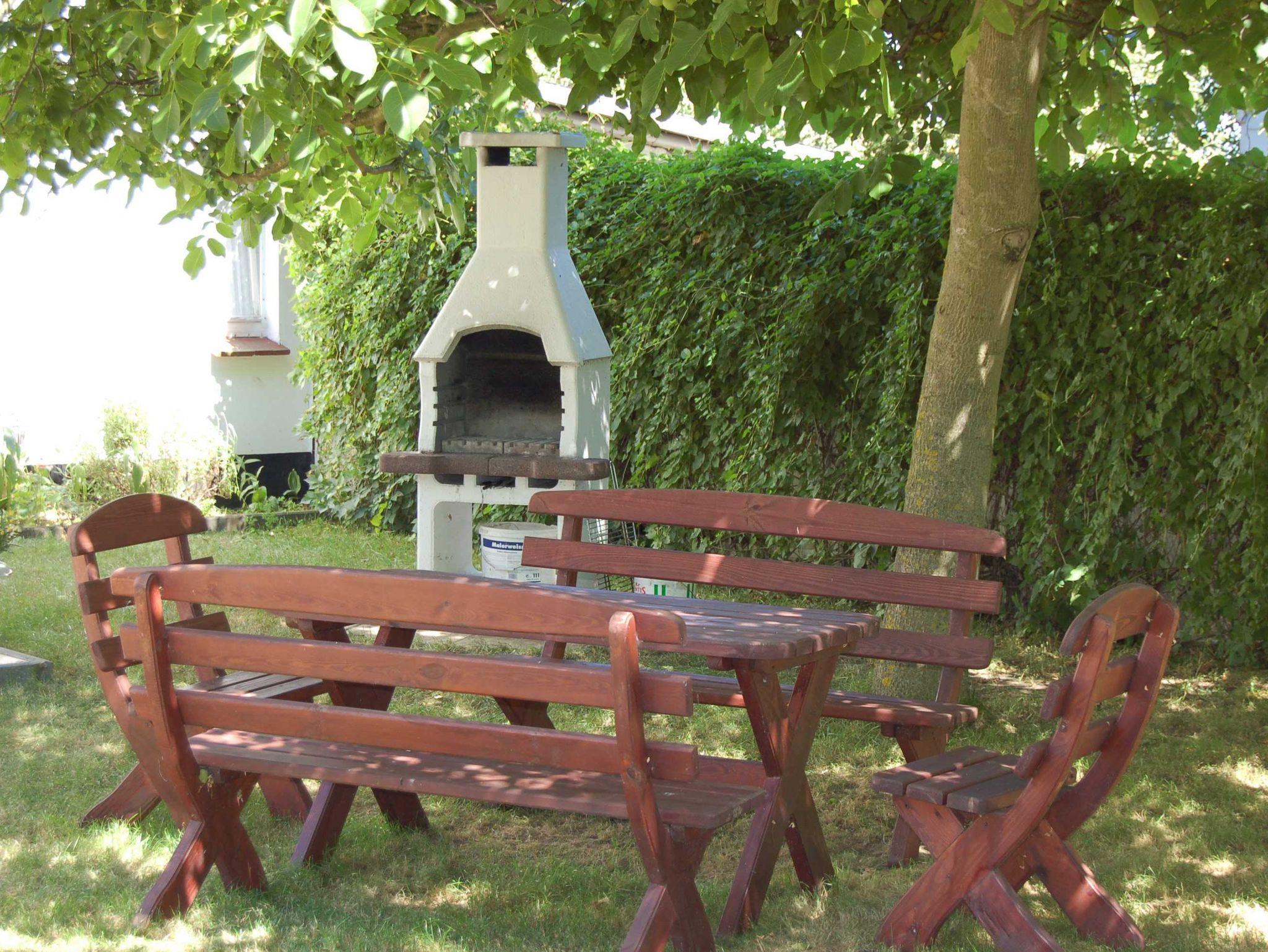 Zur Nutzung stehen Ihnen zur Verfügung Terrasse mit Sonnenliegen, Sitzmöglichkeiten im Freien, Spiel-und Liegewiese mit Tischtennisplatte, Sandkiste, Kinderspielturm und Grillplatz mit Grillkamin sowie ein kostenloser Parkplatz auf dem Grundstück.