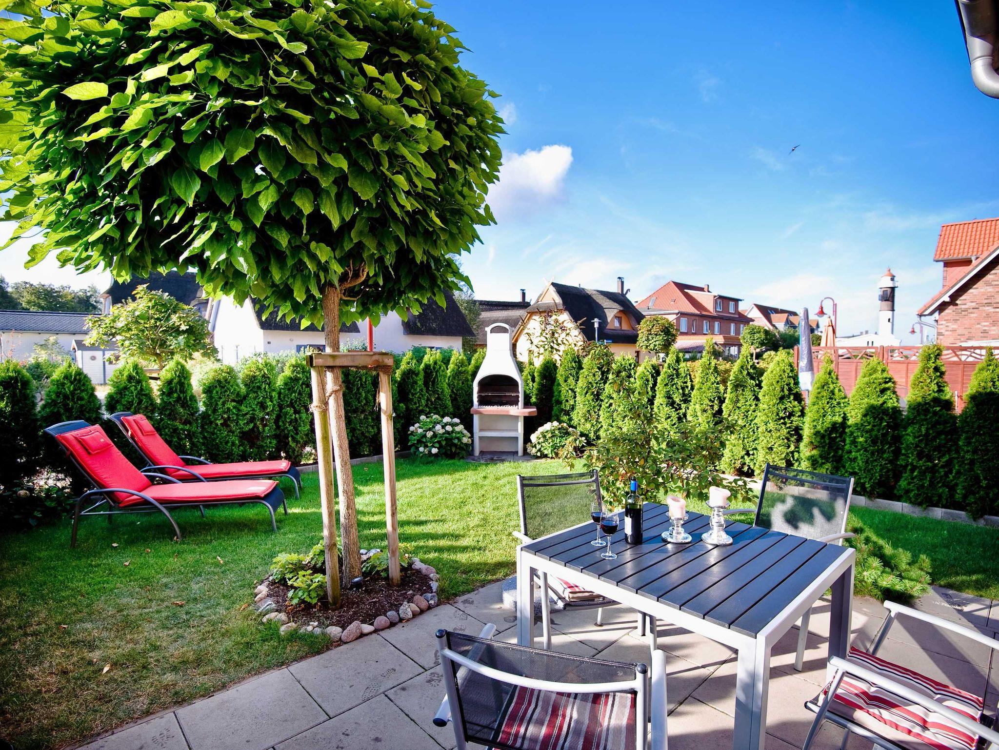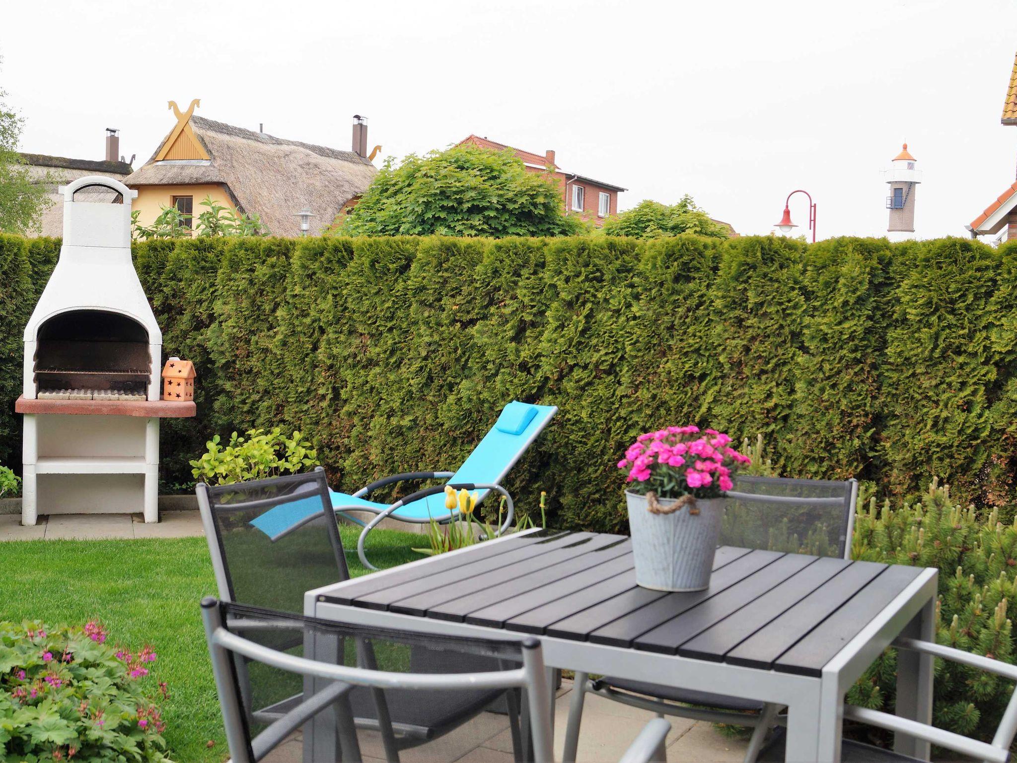 Im Garten mit Grill und Gartenmöbeln können Sie sich am Anblick des Leuchtturms erfreuen und entspannte Ferientage verbringen.