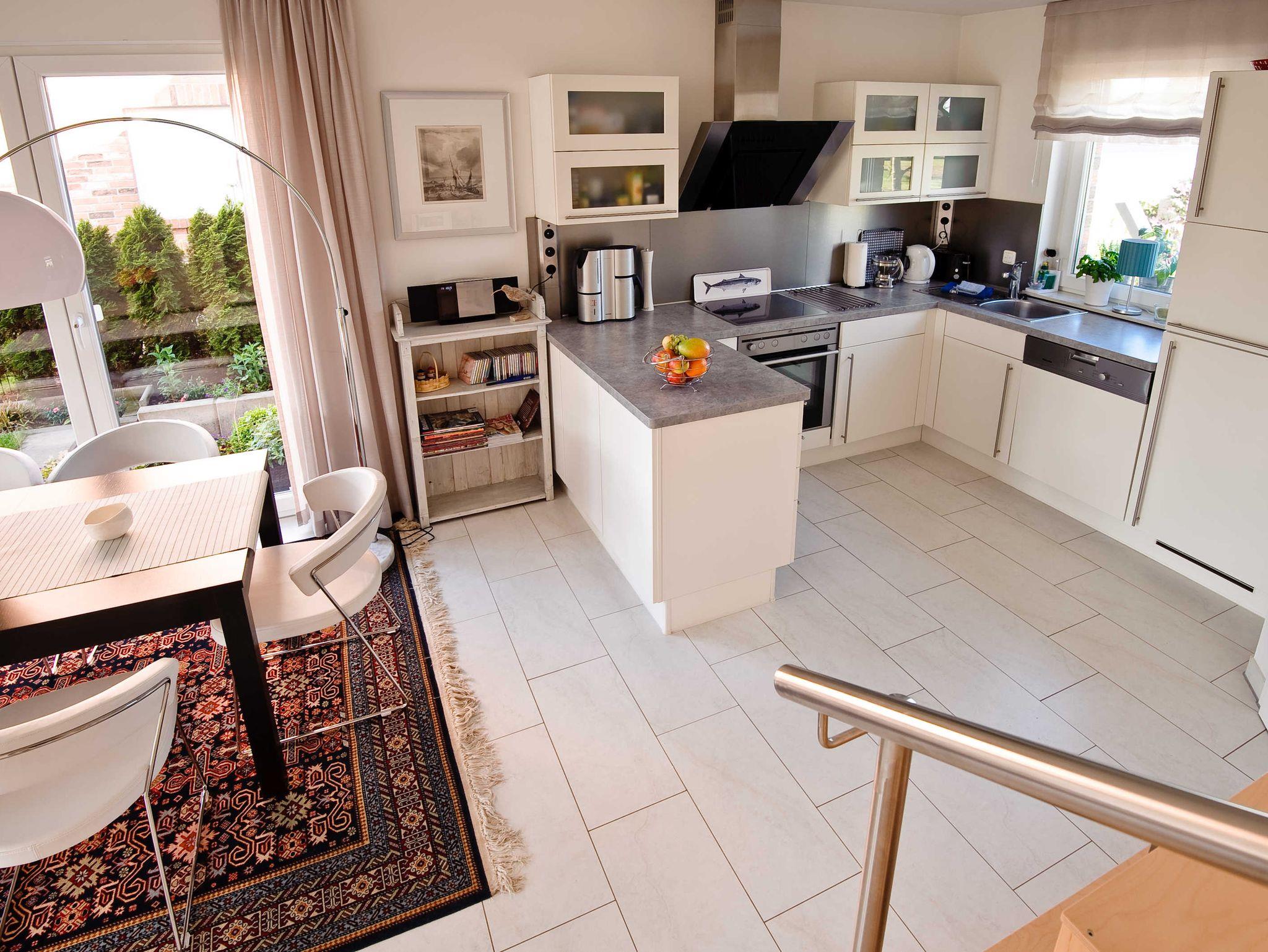 Diese kinderfreundliche, modern ausgestattete Doppelhaushälfte mit ca. 100 m² verfügt im EG mit gefliesten Böden über eine technisch komplett eingerichtete Küche.