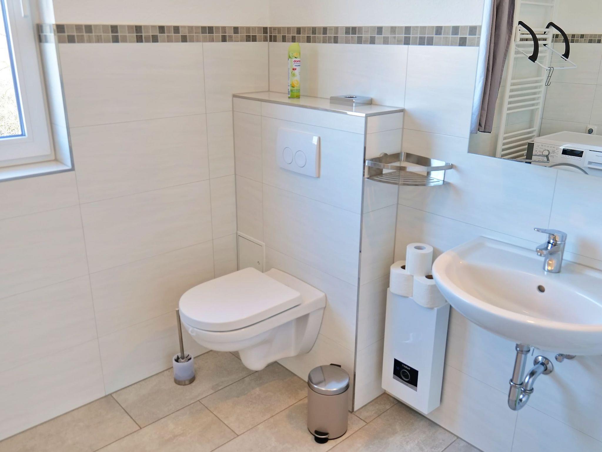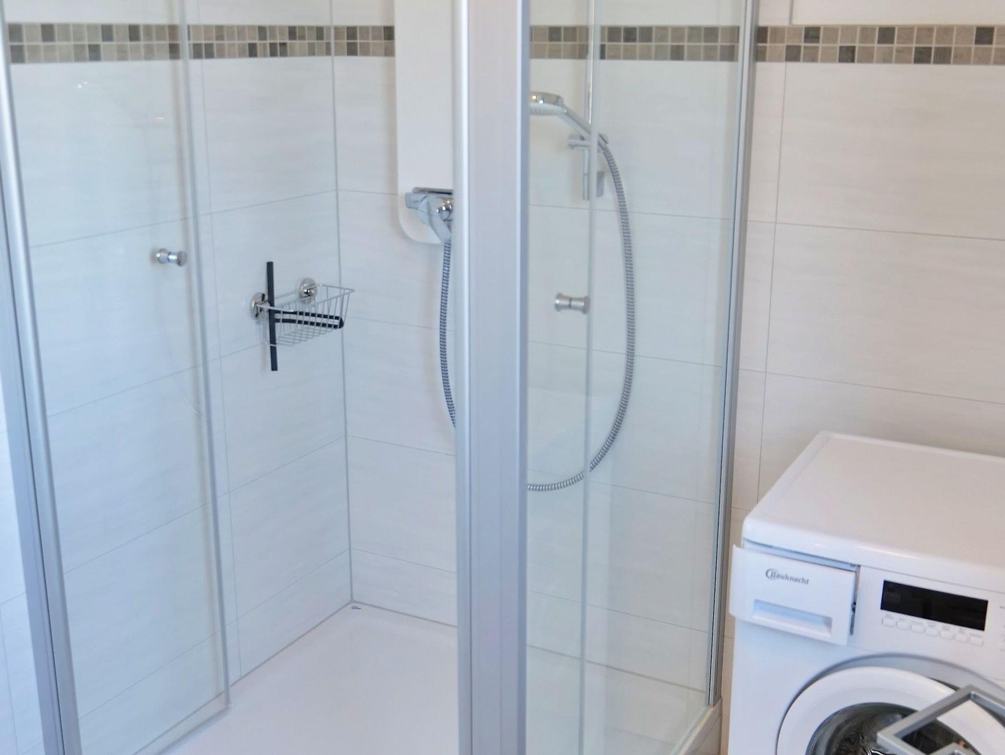 - Duschbad mit Dusche, WC, Spiegelschrank und Waschmaschine