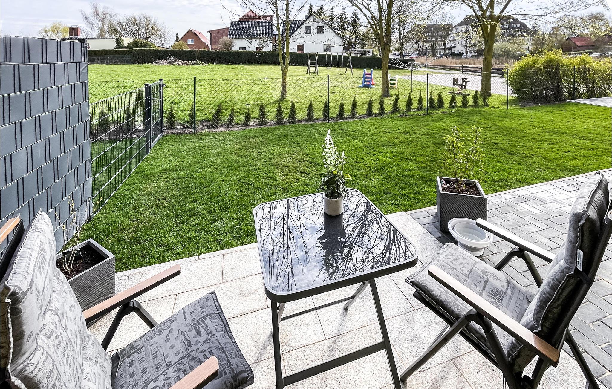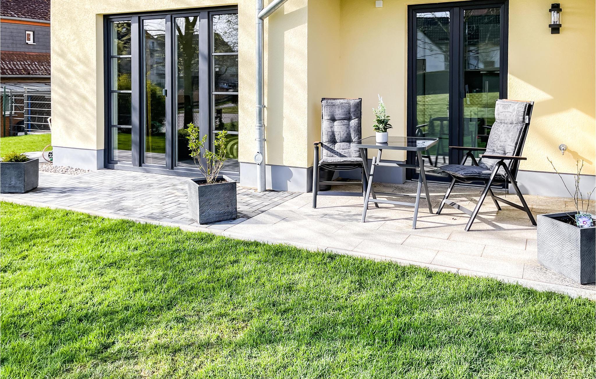Modernes Apartment mit Terrasse und Gartenmöbeln nahe dem kinderfreundlichen Strand von Gollwitz auf der Insel Poel.