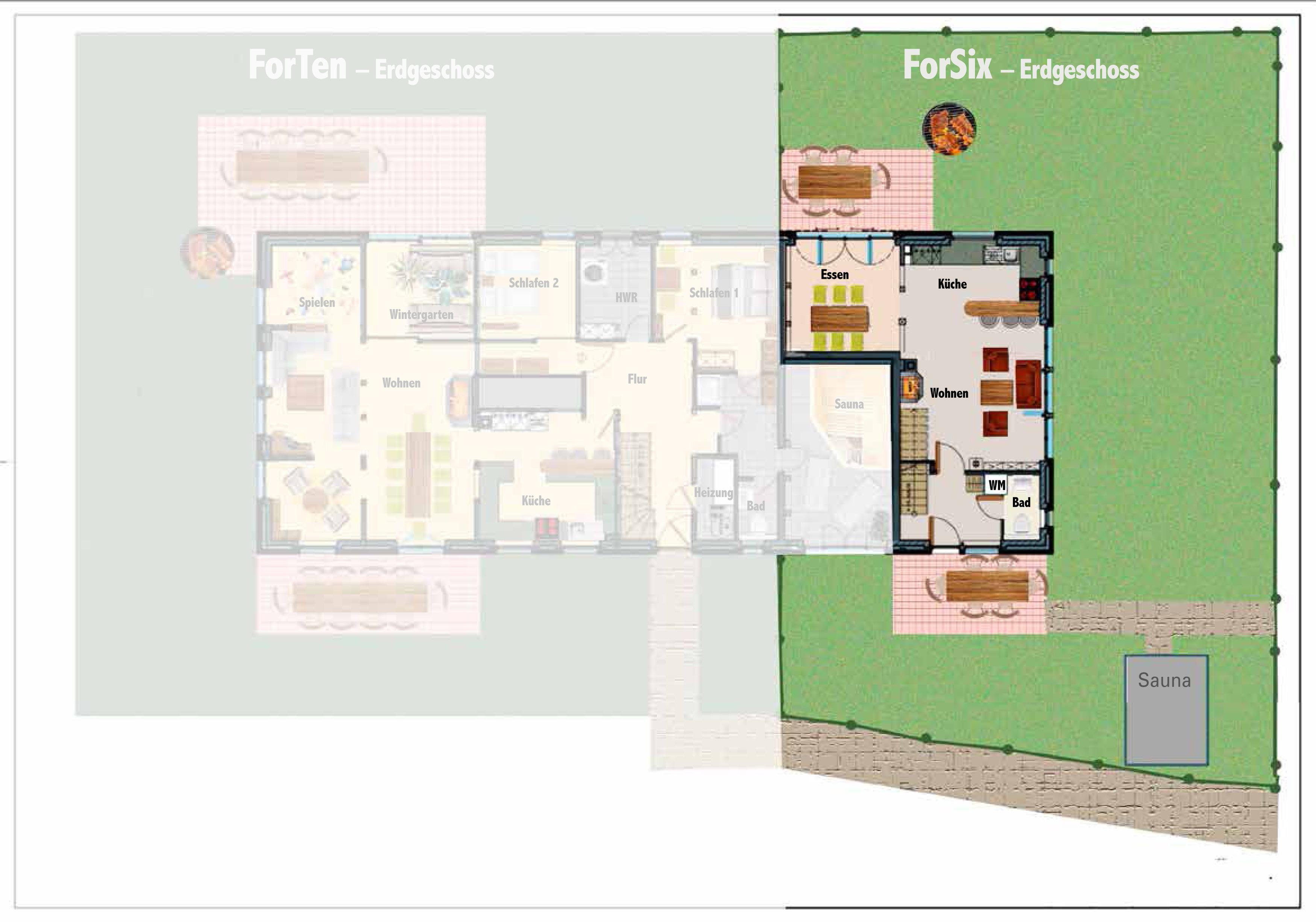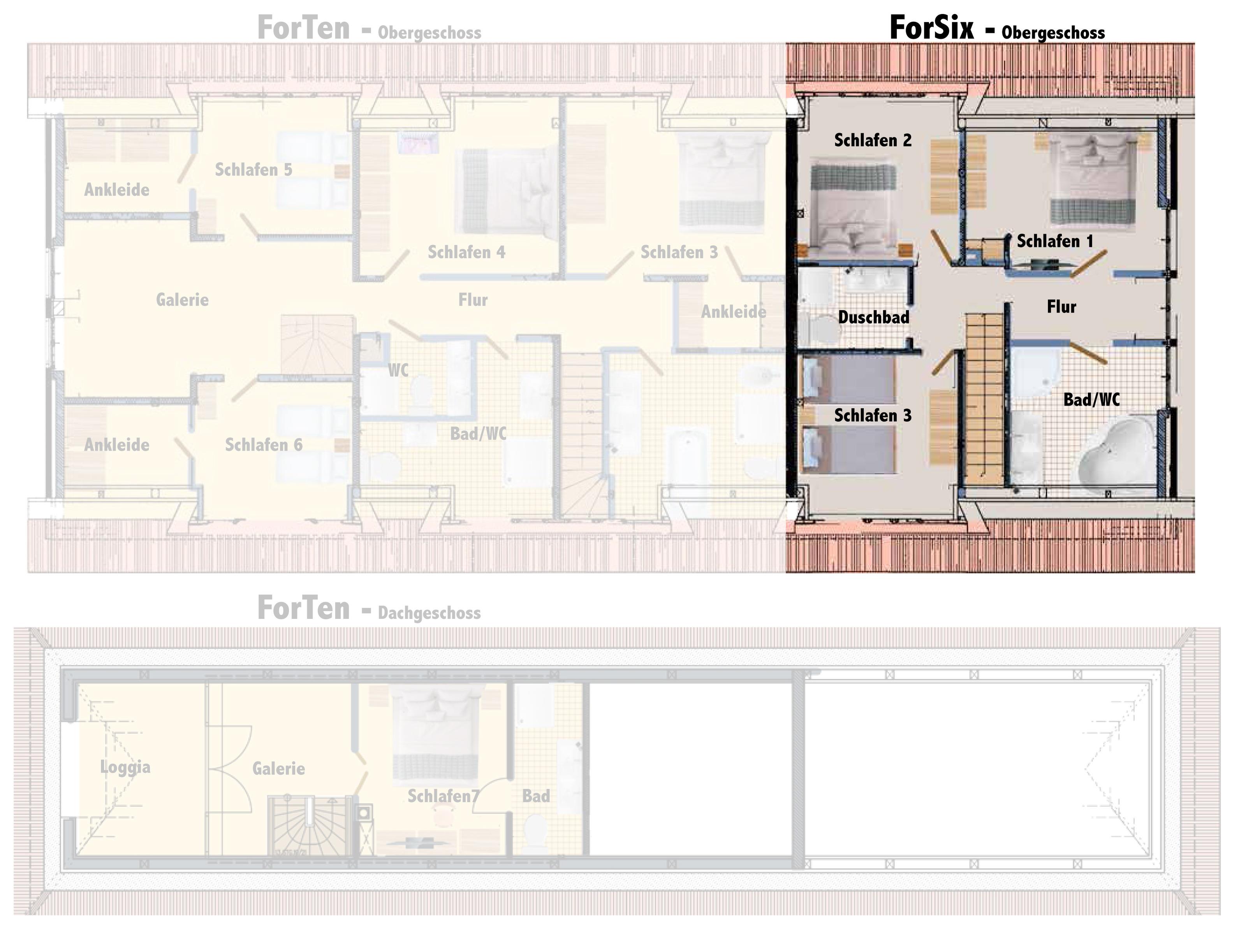 Im Obergeschoss erwartet Sie das Hauptbad mit Badewanne und Dusche sowie ein weiteres Duschbad. Zudem finden Sie hier zwei weitere Fernseher für Ihre Unterhaltung. Das Grundstück des "For Six" ist liebevoll eingezäunt und schön bepflanzt. Im Garten erwartet Sie eine Blockhaus-Sauna für bis zu sechs Personen.