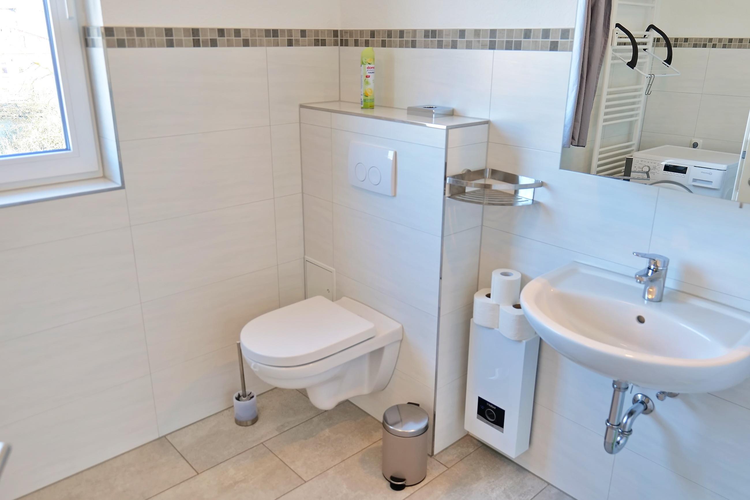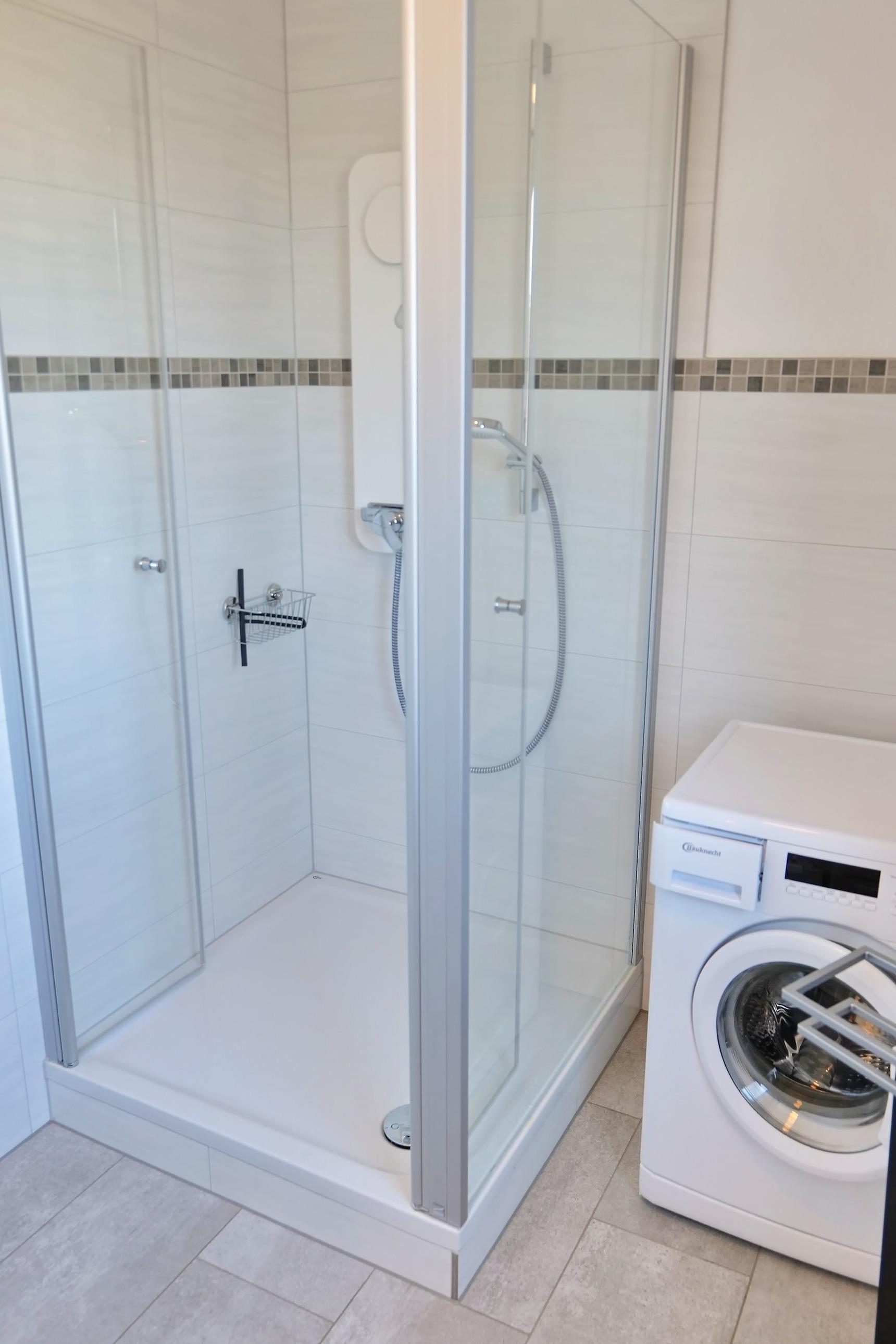 - Duschbad mit Dusche, WC, Spiegelschrank und Waschmaschine