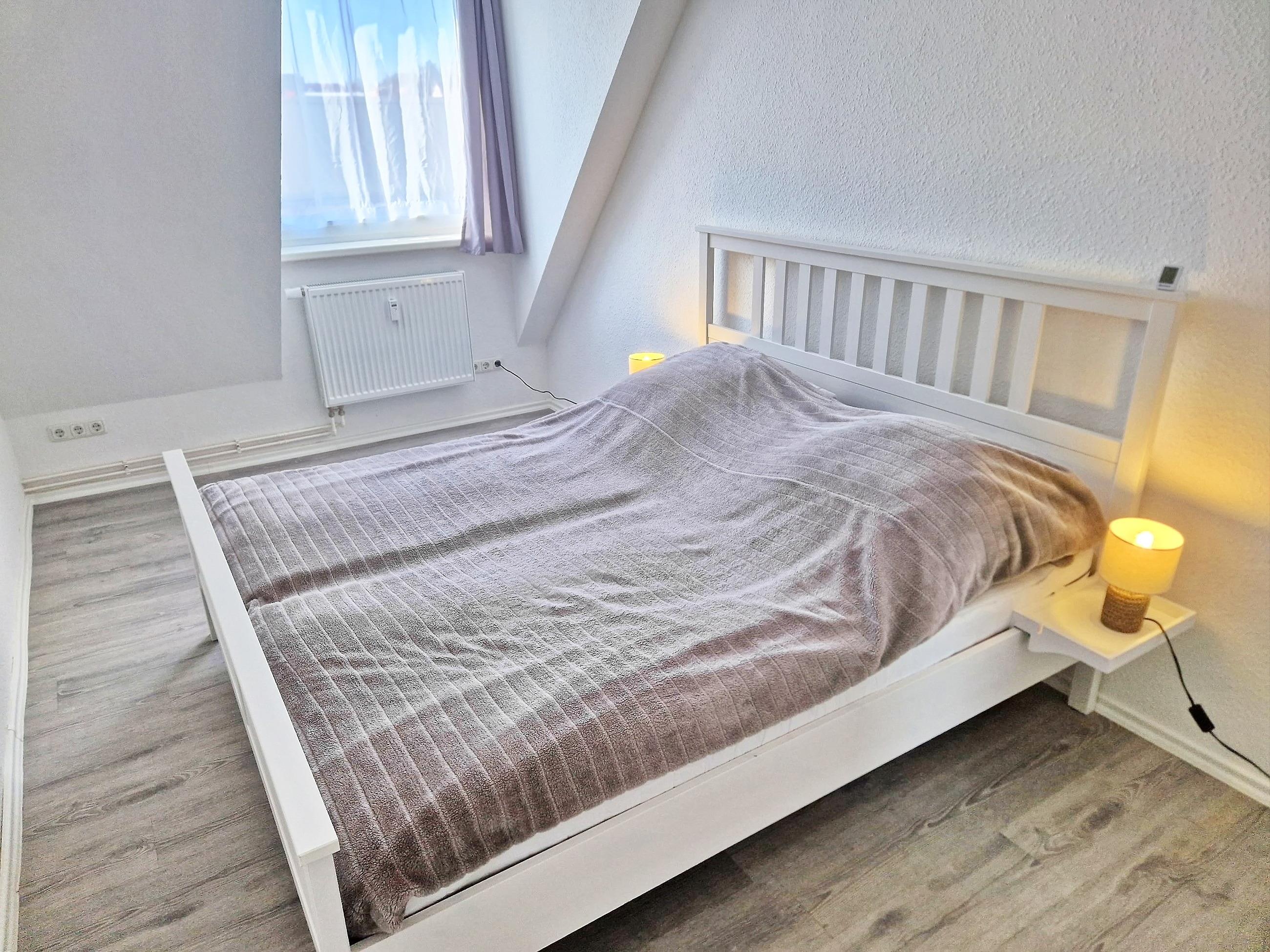 - separates Schlafzimmer mit Doppelbett und großem Kleiderschrank