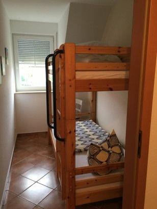 Die beiden separaten Schlafzimmer sind entweder mit einem Doppelbett oder einem Etagenbett und Kleiderschrank ausgestattet und ermöglichen Ihnen erholsame Nächte.