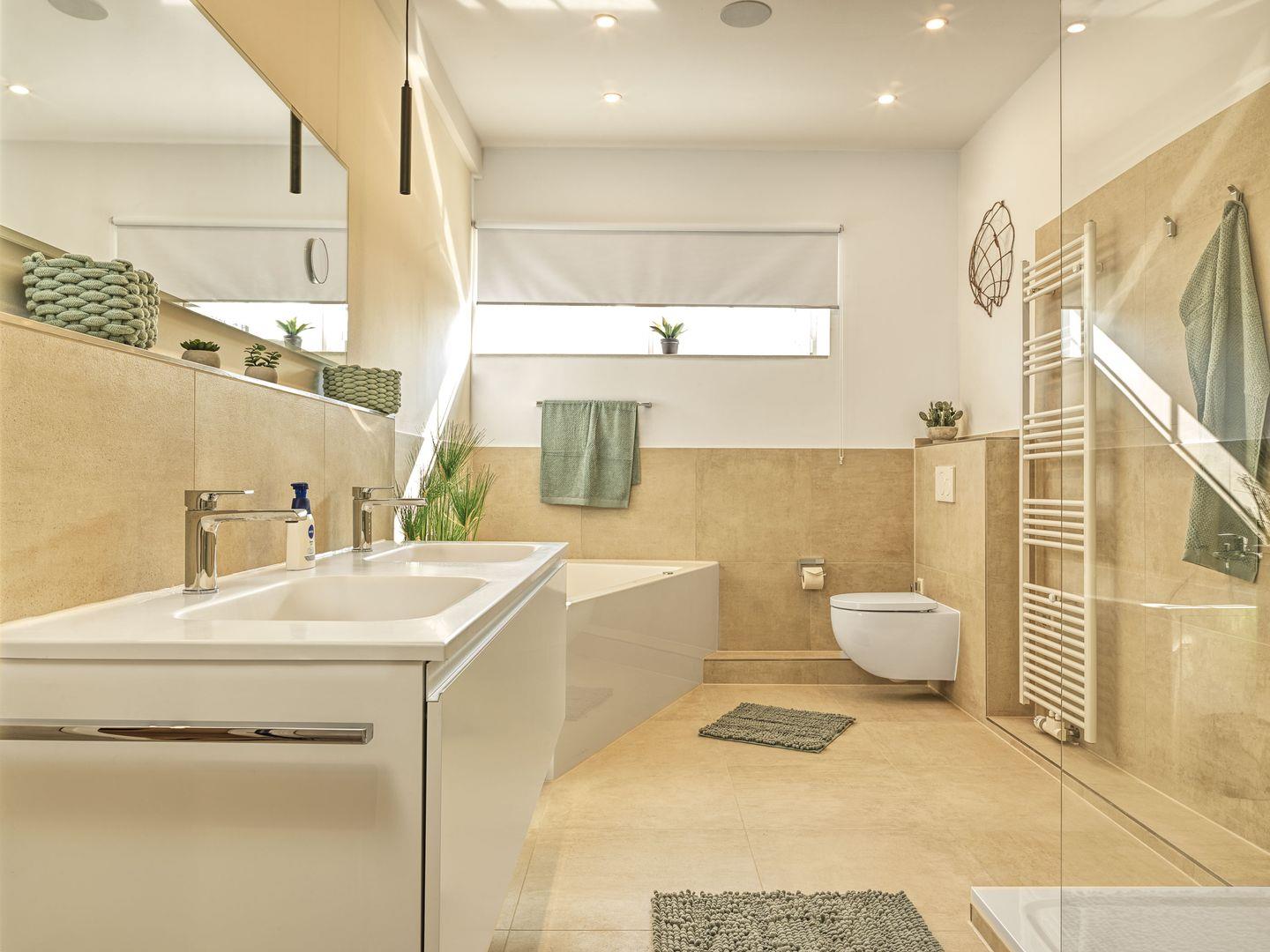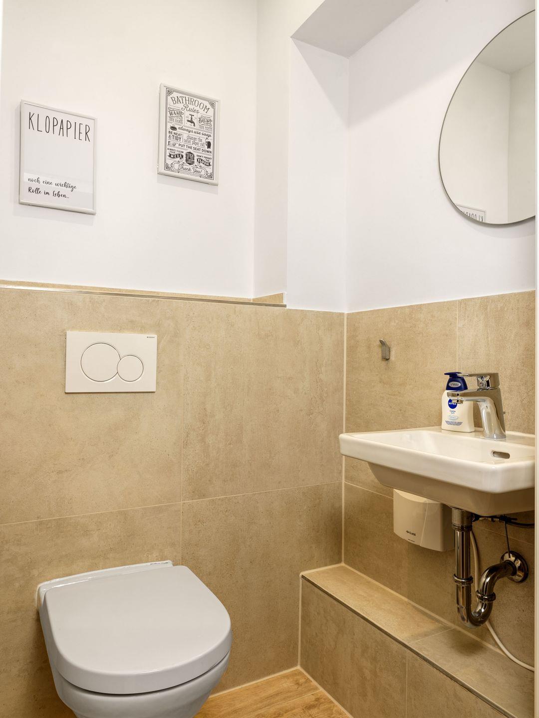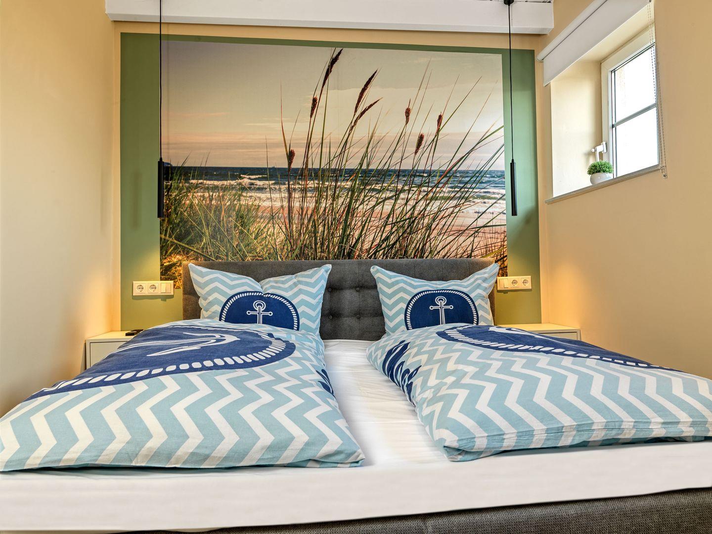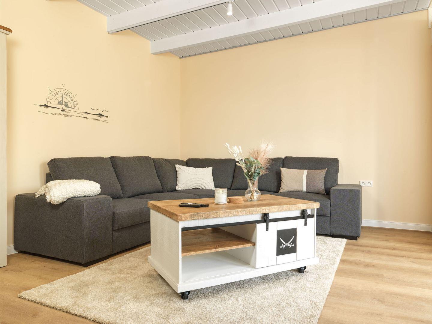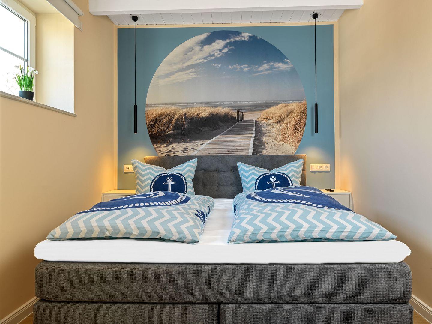 Die Ferienwohnung erstreckt sich über mehrere Zimmer und bietet Platz für bis zu acht Gäste, sodass sie optimal für größere Familien oder Gruppen geeignet ist. Mit vier gemütlichen Schlafzimmern mit Boxspringbetten und zwei modernen Badezimmern ist ausreichend Platz gewährleistet, damit sich jeder wohlfühlt. Das geräumige Wohnzimmer ist der ideale Ort, um den Abend bei einem Film zu genießen oder die Geselligkeit am Esstisch zu erleben. Die offene Küche, ausgestattet mit modernen Geräten, wie einer Spülmaschine und einem Backofen, lädt dazu ein die gemeinsamen Mahlzeiten zu genießen.