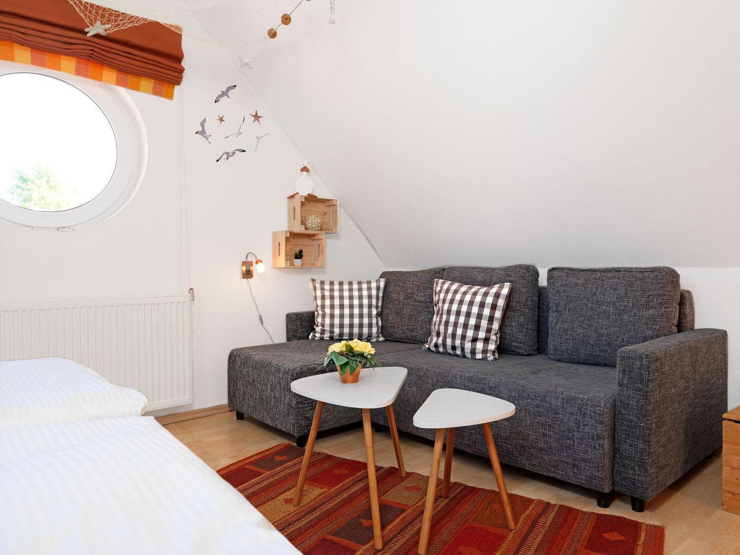 Willkommen im Appartement "Meeresbrise"! Dieses charmante Appartement befindet sich direkt am Strand vom Schwarzen Busch und bietet Ihnen eine einzigartige Lage für Ihren Urlaub. Die Wohnung erstreckt sich über zwei Ebenen und verfügt über ein gemütliches Wohnzimmer, ein Schlafzimmer und ein Bad auf der unteren Ebene. Das zweite Schlafzimmer befindet sich im Dachgeschoss und ist mit einem zusätzlichen TV ausgestattet. Beide Schlafzimmer verfügen über bequeme Doppelbetten und bieten Platz für bis zu vier Personen. Der Balkon bietet zwar keinen direkten Meerblick, aber dennoch eine schöne Aussicht auf die Umgebung. Das Bad ist mit einer Dusche und einem WC ausgestattet.