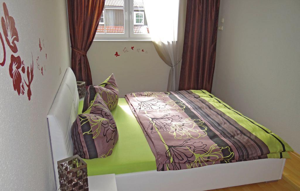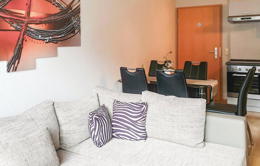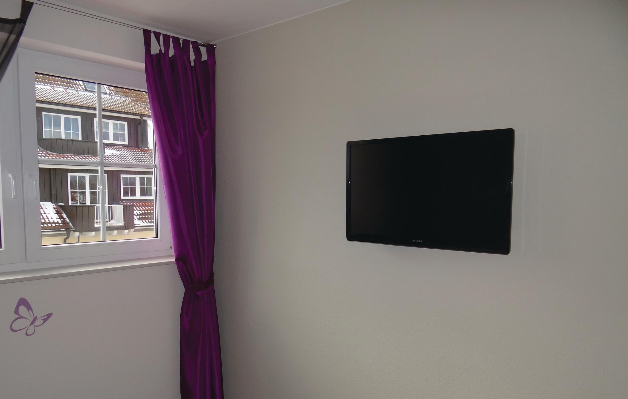 Sie erreichen das modern und sehr geschmackvoll eingerichtete Apartment im 2. Obergeschoss über einen Flur, der mit einer Zwischentür vom Treppenhaus getrennt ist. Die Wohnung ist mit dem Balkon zum Atrium ausgerichtet. Es gibt zwei Schlafplätze im Wohnbereich sowie zwei Schlafzimmer mit je einem Doppelbett. Im Wohnbereich und in den Schlafzimmern befinden sich jeweils ein Flatscreen-TV. Die offene Küche ist voll- und neuwertig ausgestattet.