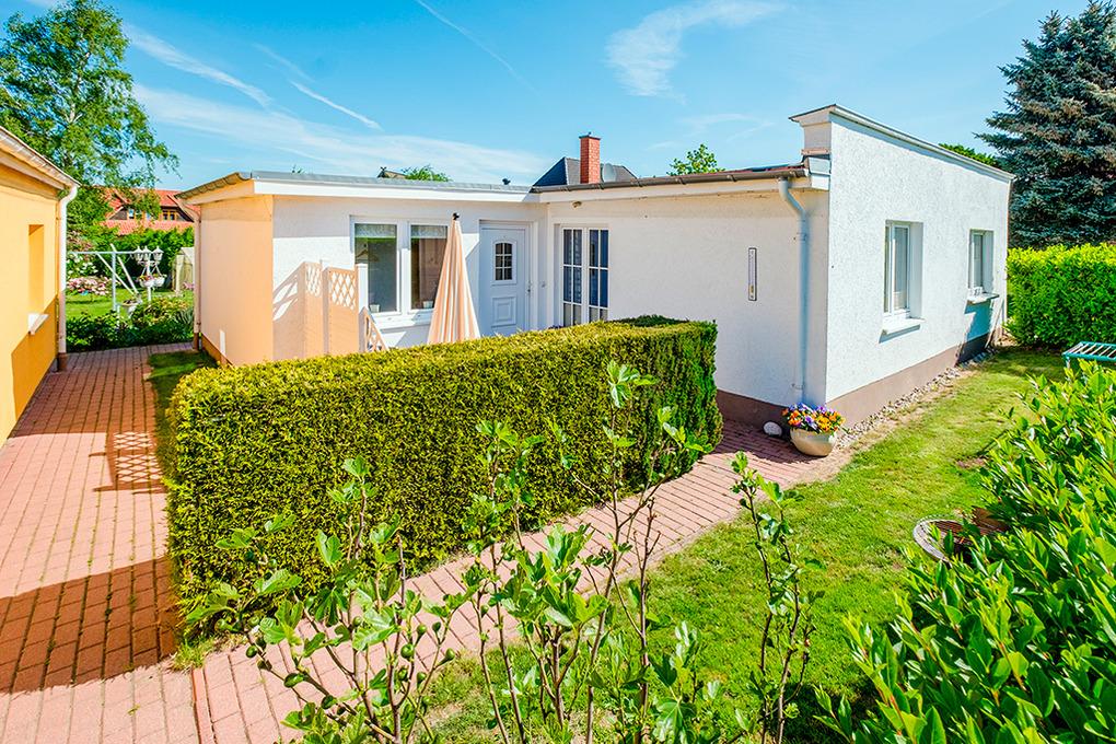 Gemütliches Ferienhaus im Bungalowstil nahe Bad Doberan und Ostseestrand, ideal für einen ruhigen Urlaub in ländlicher Lage.