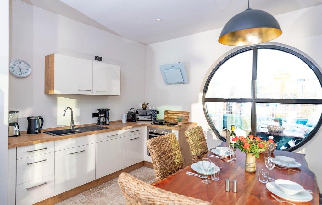 In der offenen Wohnküche bleiben keine Wünsche offen, denn rundum ausgestattet lassen sich hier köstliche Urlaubsmahlzeiten zubereiten.