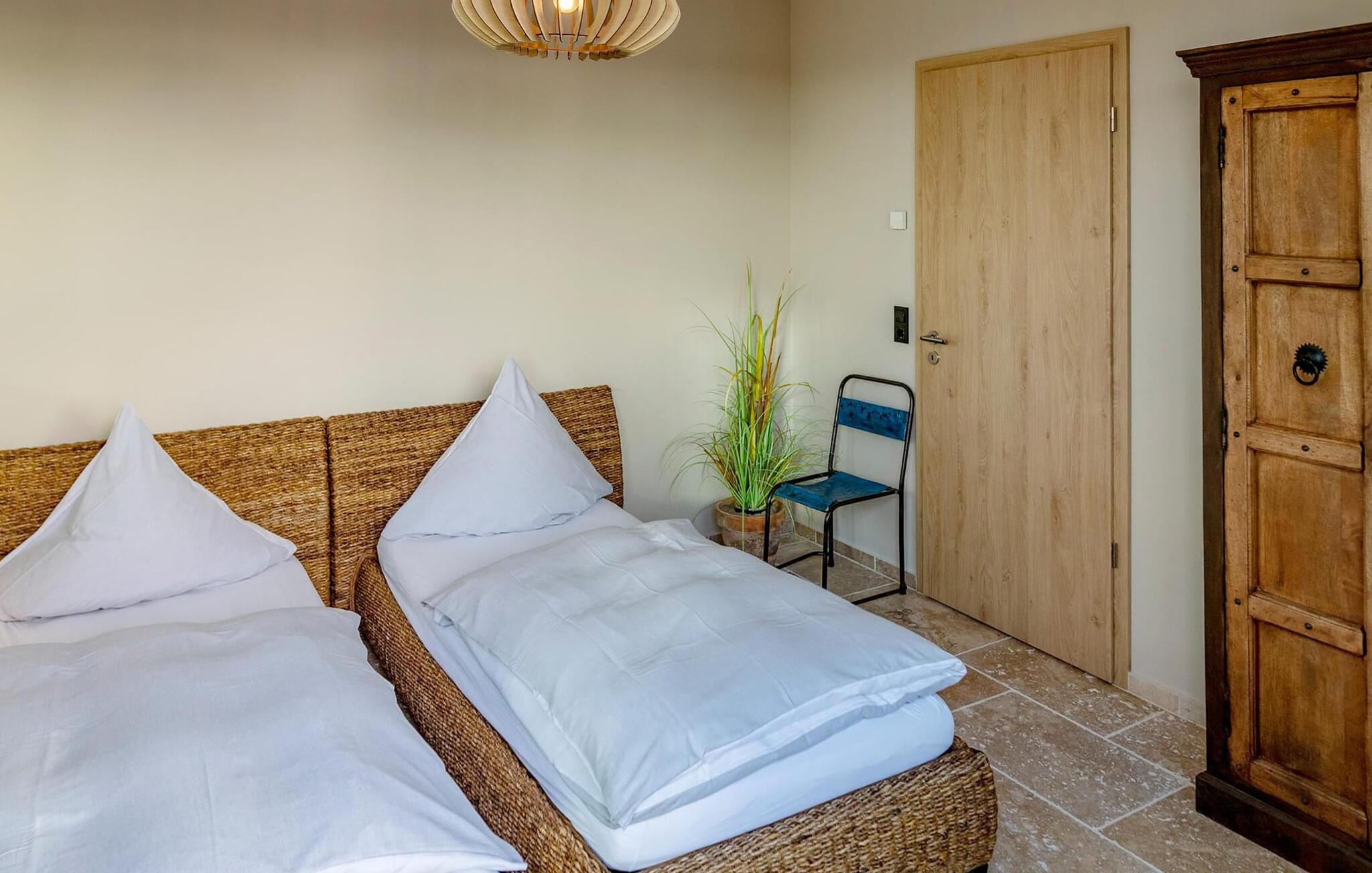 Die einzigartige Architektur mit hohen Decken und bodentiefen Fensterfronten schafft ein unvergessliches Urlaubserlebnis, denn das Wasser ist zum Greifen nah. Für ein angenehmes Raumklima sorgt der biologische Bau mit Kalk-Putz, während Naturstein Fußböden aus italienischem, hellem Travertin im wahrsten Sinne erden. Hochwertig ausgestattet präsentiert sich diese Ferienwohnung in einzigartigem Design mit Souvenirs aus aller Welt. Jeder Raum verfügt zudem über eine andere natürliche Wandfarbe. Die verspiegelten Scheiben schaffen maximale Privatsphäre.