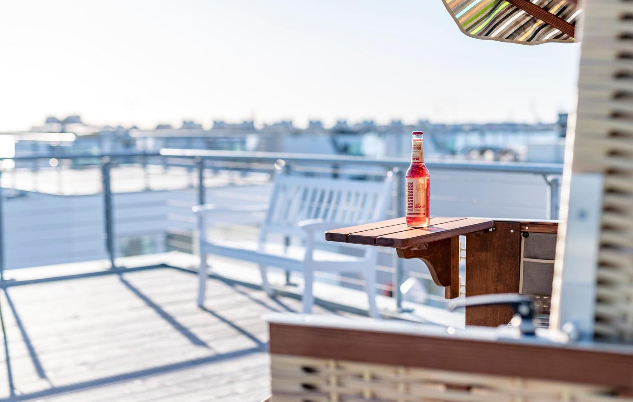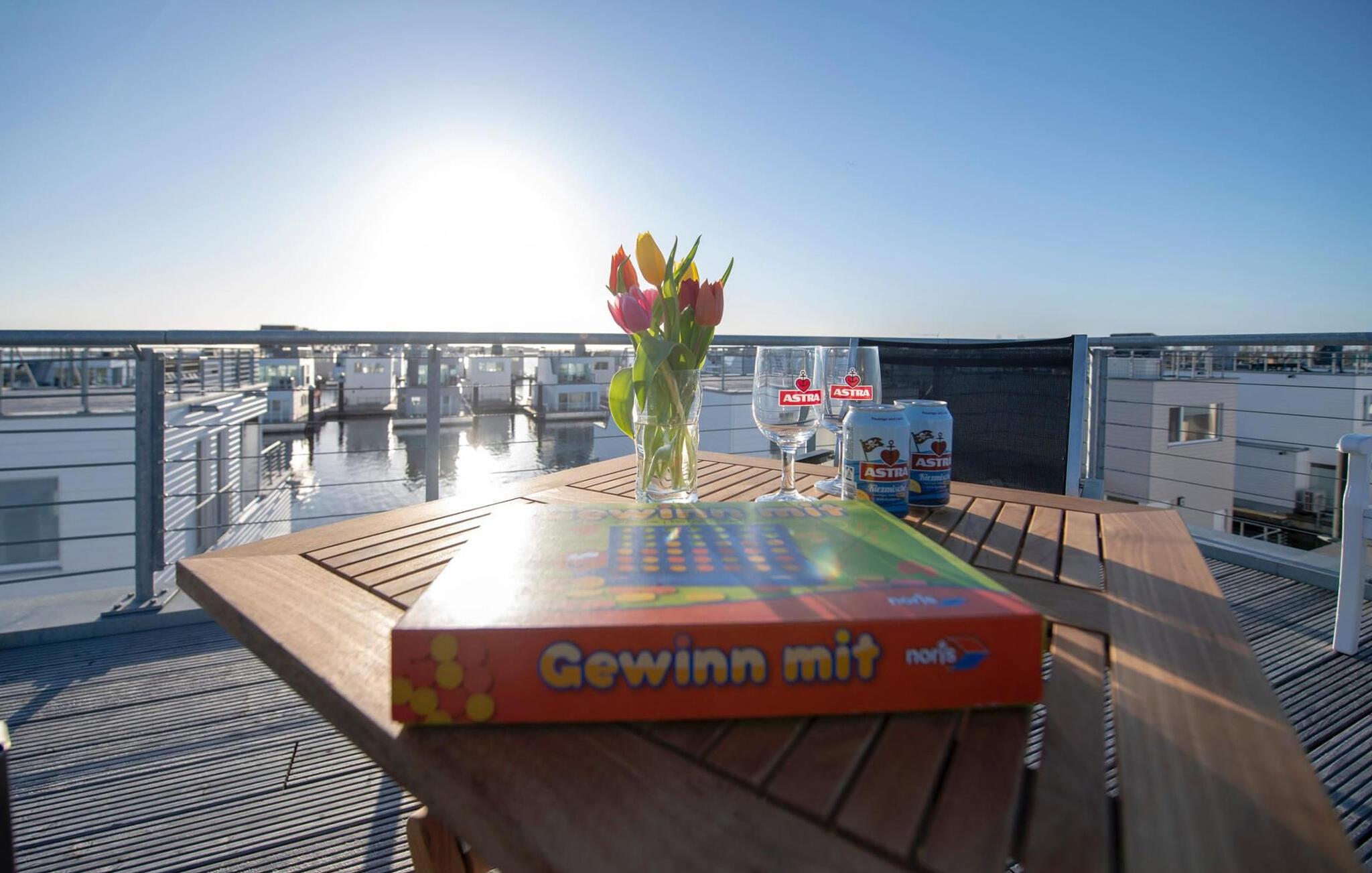 Unser Lieblingsplatz: Mit einem Sundowner und einer Möwe auf der Dachterrasse entspannen und den Sonnenuntergang genießen.
