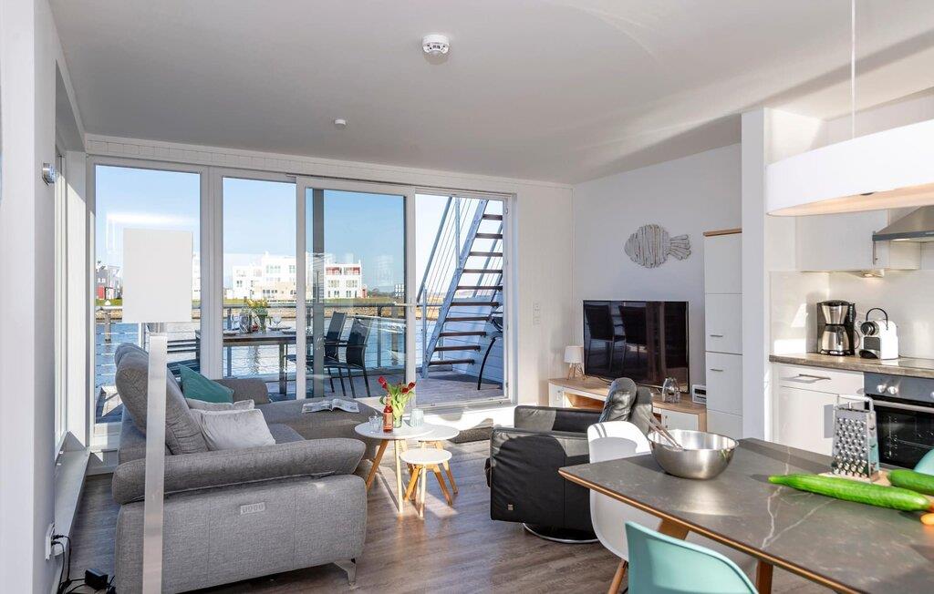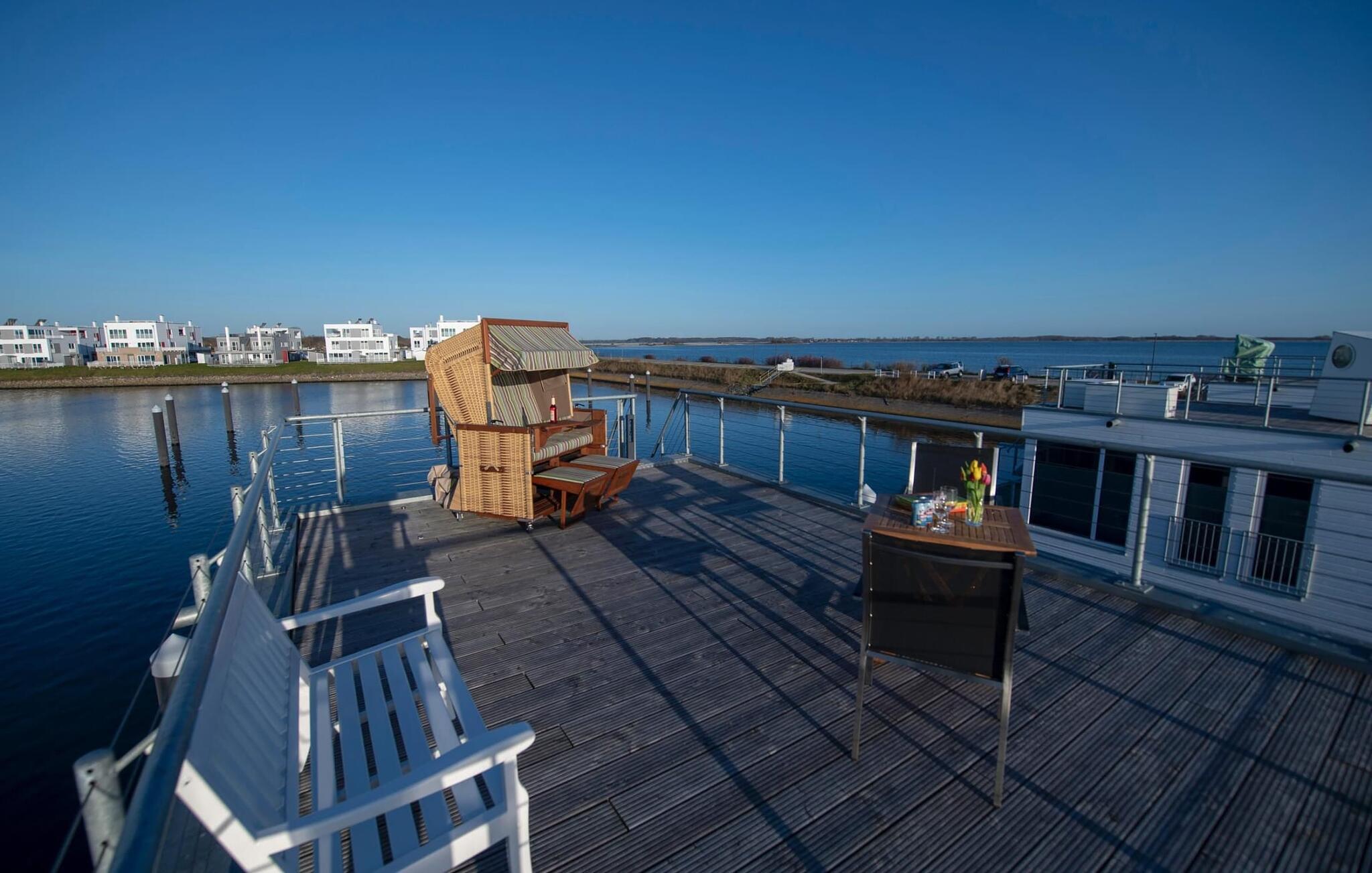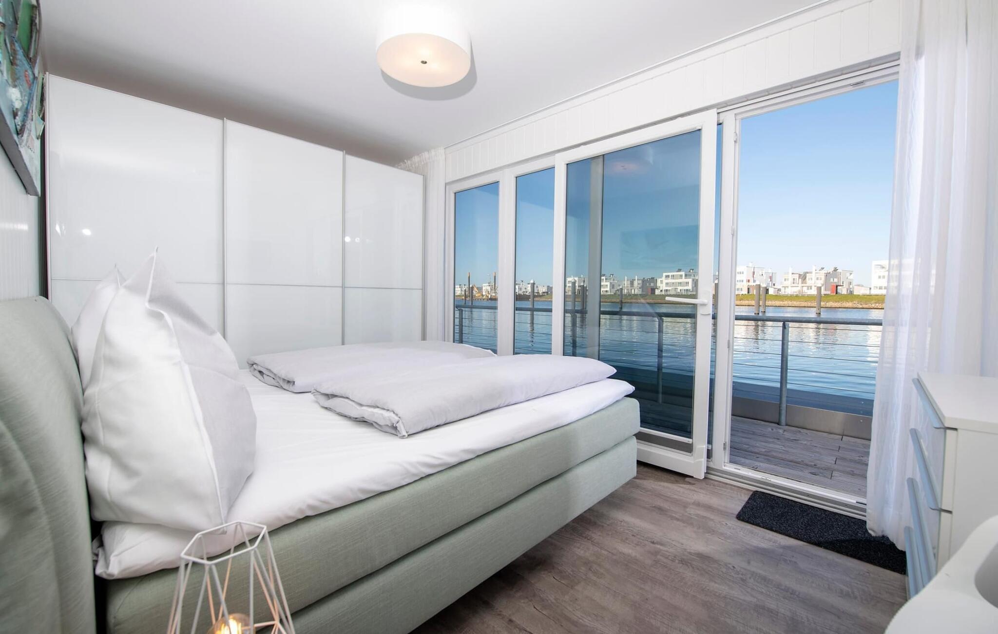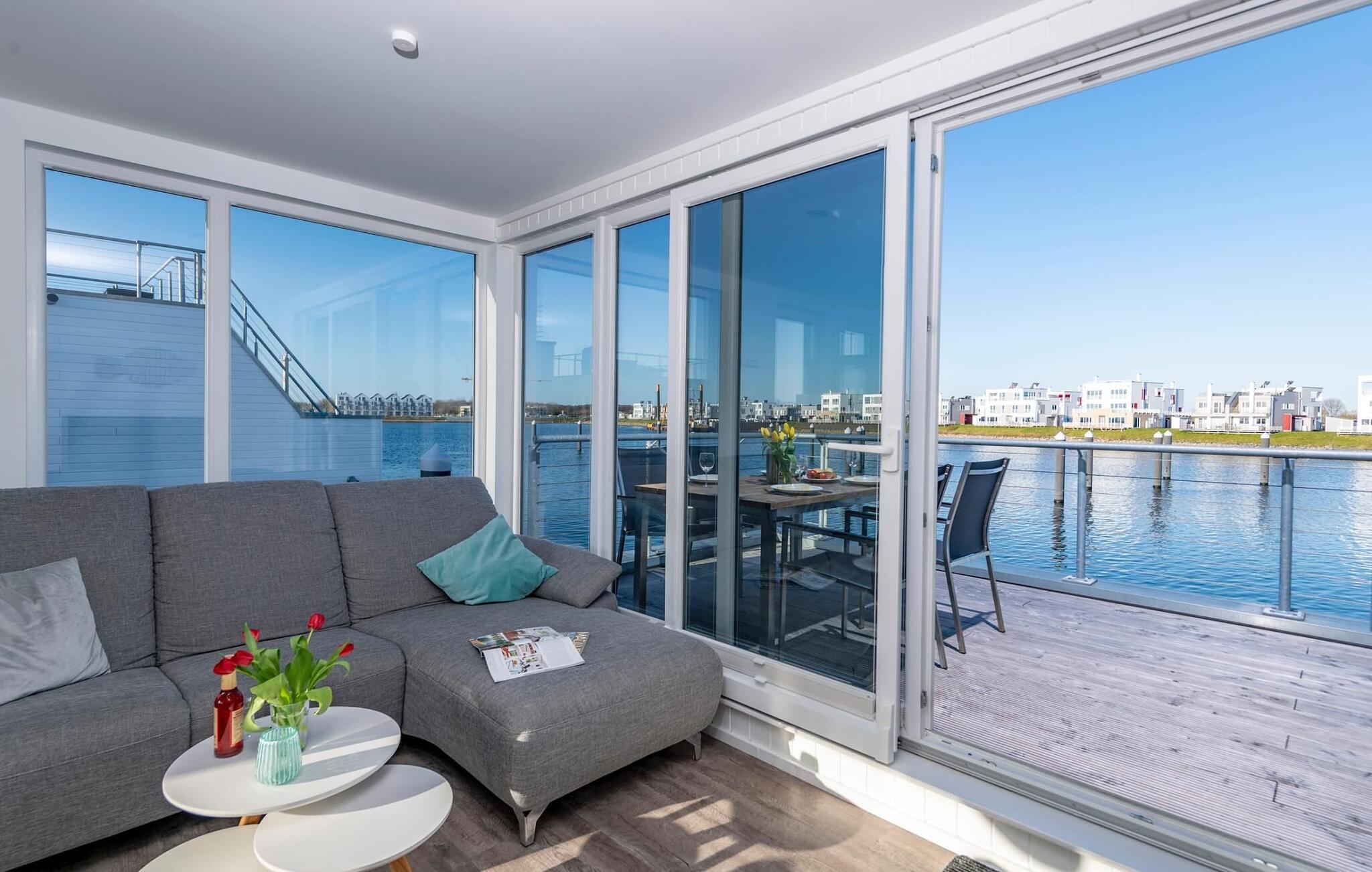 Erleben Sie Luxus und Meerblick im einzigartigen schwimmenden Ferienhaus Jule am OstseeResort Olpenitz.