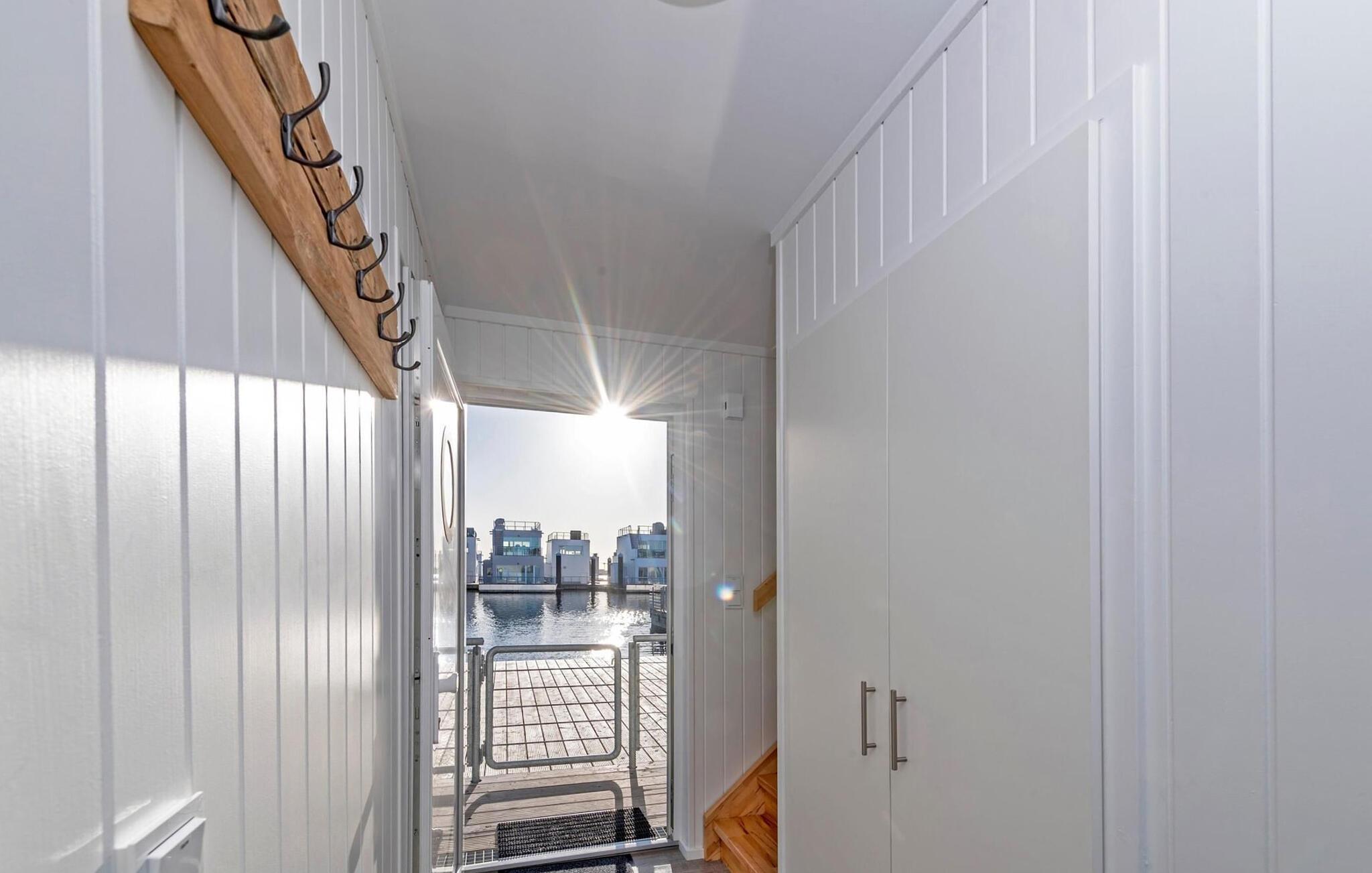 Wasser, wohin das Auge reicht. Durch bodentiefe Panorama-Fensterfronten lässt sich die atemberaubende Kulisse genießen und von der Dachterrasse aus bieten sich spektakuläre 360-Grad-Ansichten auf Schlei, Ostsee und Marina. Die Ostsee ist nur eine Badeleiter entfernt und der Sandstrand des OstseeResorts zu Fuß zu erreichen. In der dunklen Jahreszeit spenden Fußbodenheizung und Sauna wohligen Komfort, denn an Bord darf das Wellness Programm nicht fehlen. Für Naschkatzen verfügt dieses schwimmende Haus sogar über ein Waffeleisen. Neben dem Hafenkino sorgt der HD-TV mit Home Entertainment Programm für Unterhaltung, während sich das Relax-Sofa automatisch ausfahren lässt. Die Glasfaser-Anbindung mit maximal möglichen Up- und Downloadkapazitäten erlaubt vollen Urlaubskomfort.