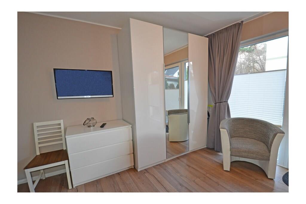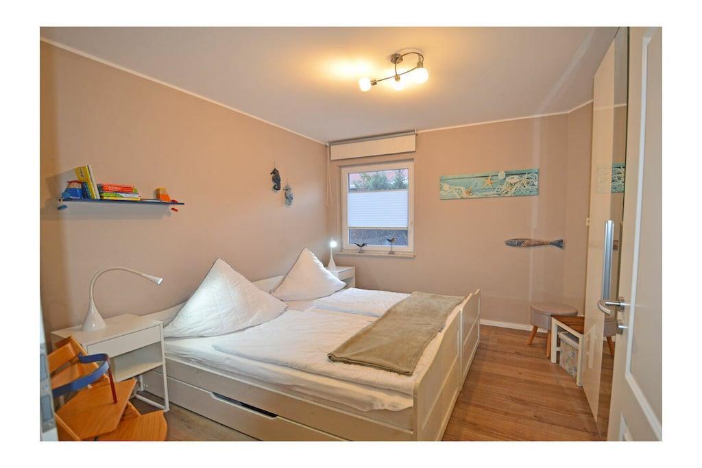Parterre: großzügiger Wohn- Essbereich, gemütliche Couchlandschaft, TV/ Sat (Smart-TV Flatscreen), Radio/CD, Internet (WLAN), Bücher und Gesellschaftsspiele für gemütliche Abende, Fliegenschutzgitter im Wohnzimmer und in den Schlafräumen, offene komplett ausgestattete Einbauküche mit hochwertigen Geräten, Filter-und Kapselkaffeemaschine (Tchibo Cafissimo pure+) 4- Plattenherd (Ceranfeld), Backofen, Kühlschrank mit kleinem Gefrierfach, Geschirrspüler, Mikrowelle und diversen Elektrogeräten, Waschmaschine in der Küche vorhanden, großes Bad mit ebenerdiger Dusche und WC 1. Schlafzimmer mit Doppelbett (2 Matratzen je 90x200), TV/Sat (Flatscreen) und Kleiderschrank, 2. Schlafzimmer mit einem Doppelbett (zwei Einzelbetten mit je einer Matratze 90x200) und Kleiderschrank Außenbereich: große Terrasse (20 m²) mit Strandkorb, Tisch und Gartenstühle, Sonnenschirm vorhanden, Grillmöglichkeit besteht (Gemeinschaftsgrill)