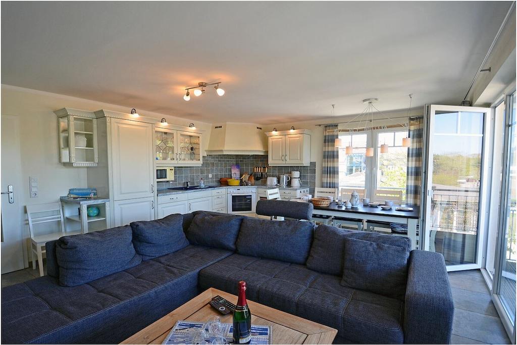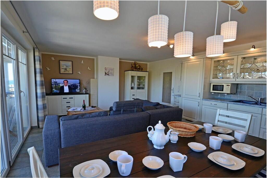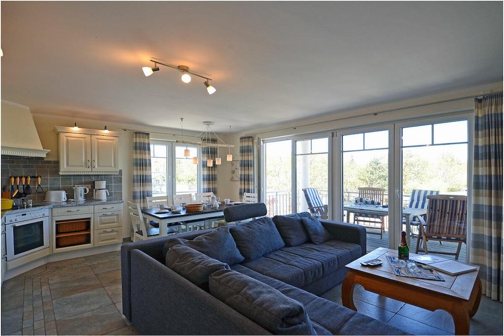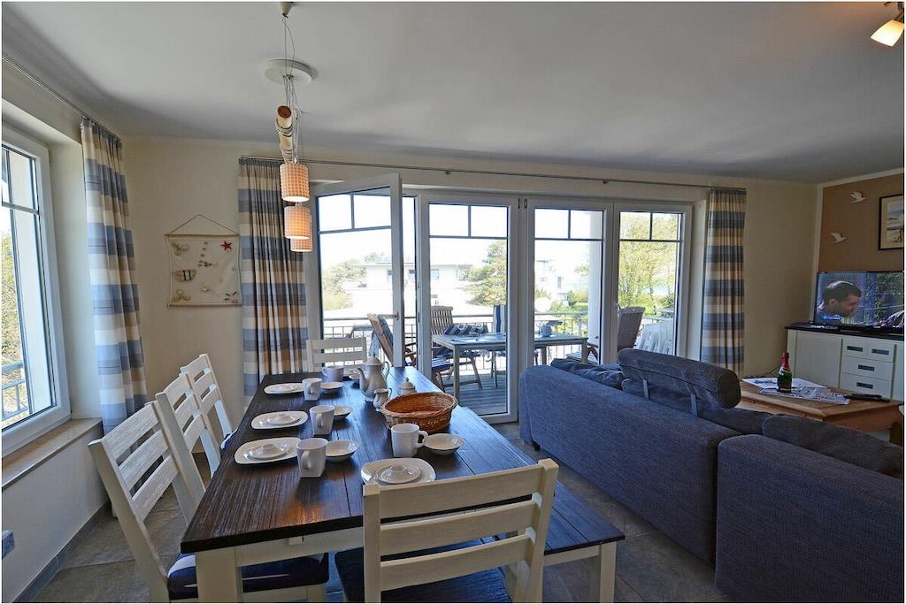 Seebad Juliusruh, 2. Etage mit Meerblick, gehobene Ausstattung, zentrale Lage, 25 m zum Sandstrand (Ostsee), ca. 2000 m zum Hafen Breege Wohn- Essbereich mit gemütlicher Couchlandschaft zum Ausziehen (Schlafplatz für 2 Personen), TV/ Sat (Flatscreen), DVD-Player, Radio/ CD, eingeschränkte, Internet-Geschwindigkeit max 3000 Mbit/s vorhanden, offene komplett ausgestattete Einbauküche mit 4- Plattenherd (Ceranfeld), Backofen, Kühlschrank mit großem Gefrierfach, Geschirrspüler, Mikrowelle und diversen Elektrogeräten, 1. Schlafzimmer mit Doppelbett (180x200) und großem Kleiderschrank, 2. Schlafzimmer mit Etagenbett (90x200) und Tandembett (90x200) und seitlichem Meerblick, TV (Flatscreen), Bad mit Dusche/ WC, Bidet und Fön, großer Balkon mit Gartenmöbel und Meerblick komplett Fußbodenheizung, Kinderreisebett und Hochstuhl vorhanden, Bügeleisen und Bügelbrett vorhanden, direkter Zugang zum Sandstrand, Blick vom Strand bis nach Kap Arkona, Nichtraucher, Abstellmöglichkeit für Fahrräder vorhanden, Ca. 2 km entfernt in Altenkirchen finden Sie einen Netto, das Kaufhaus „Stolz“, Edeka und einen Getränkemarkt. Restaurants und Radverleih sind in der Nähe. vom ca. 2 km entfernten Hafen sind Ausflugsmöglichkeiten per Schiff zur Insel Hiddensee und zu den Störtebeker-Festspielen möglich, Segelschule, optimale Rad- und Wandermöglichkeiten, eine Garage für ein PKW am Objekt und 2 weitere PKW-Stellplätze, Haustiere nach Absprache (Gebühr 5 Euro pro Haustier/ pro Tag)