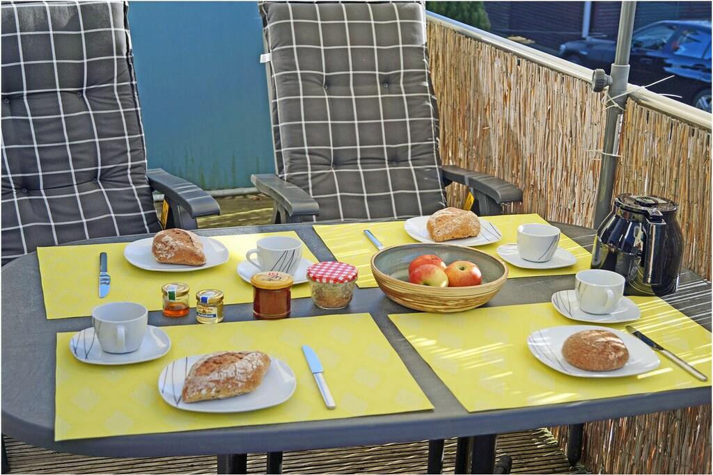 1.Etage: großzügiger Wohn- Essbereich, gemütliche Couchlandschaft und ein Esstisch, TV/ Sat (Flatscreen), Radio, Internet (WLAN), Bücher und Gesellschaftsspiele für gemütliche Abende, Fliegenschutzgitter an allen Fenster, offene komplett ausgestattete Einbauküche mit hochwertigen Geräten, 4- Plattenherd (Ceranfeld), Backofen, Kühlschrank mit kleinem Gefrierfach, Geschirrspüler, Mikrowelle, Kaffeemaschine und diverse Elektrogeräte, großes Bad mit moderner ebenerdiger Dusche und WC, Föhn und Kosmetikspiegel vorhanden, 1. Schlafzimmer mit Doppelbett (getrennte Matratzen je 90×200) und großer Kleiderschrank, 2. Schlafzimmer mit 2 Einzelbetten (90×200), Kleiderschrank und TV/Sat (Flatscreen) Außenbereich: auf dem Grundstück befindet sich ein Gemeinschaftsgrillplatz, Abstellmöglichkeit für Fahrräder (nicht verschließbar)