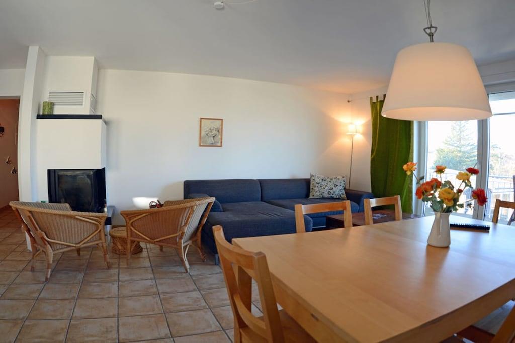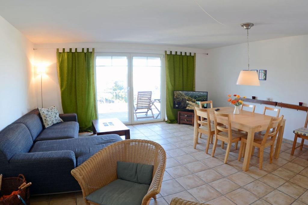 Seebad Juliusruh, 2. Etage mit Meerblick, gehobene Ausstattung, zentrale Lage, 25 m zum Sandstrand (Ostsee), ca. 2000 m zum Hafen Breege Wohn- Essbereich mit gemütlicher Couchlandschaft und Kamin, TV/ Sat (Flatscreen), Radio/ CD, Internet-Geschwindigkeit max 3000 Mbit/s vorhanden, offene komplett ausgestattete Einbauküche mit 4- Plattenherd (Ceranfeld), Backofen, Kühlschrank mit kleinem Gefrierfach, Geschirrspüler und diversen Elektrogeräten, 1. Schlafzimmer mit Doppelbett und großem Kleiderschrank, 2. Schlafzimmer mit 2 Etagenbetten und Kleiderschrank, Bad mit Dusche/ WC, großer Balkon mit Gartenmöbel und Meerblick "besonderer Traumurlaub direkt am Ostseesandstrand mit Meerblick" komplett Fußbodenheizung, direkter Zugang zum Sandstrand, Blick vom Strand bis nach Kap Arkona, Nichtraucher, Abstellmöglichkeit für Fahrräder in der Garage möglich, Ca. 2 km entfernt in Altenkirchen finden Sie einen Netto, das Kaufhaus „Stolz“, Edeka und einen Getränkemarkt. Restaurants und Radverleih sind in der Nähe. vom ca. 2 km entfernten Hafen sind Ausflugsmöglichkeiten per Schiff zur Insel Hiddensee und zu den Störtebeker-Festspielen möglich, Segelschule, optimale Rad- und Wandermöglichkeiten, Garage für ein PKW-Stellplatz am Objekt, Haustiere nicht erwünscht