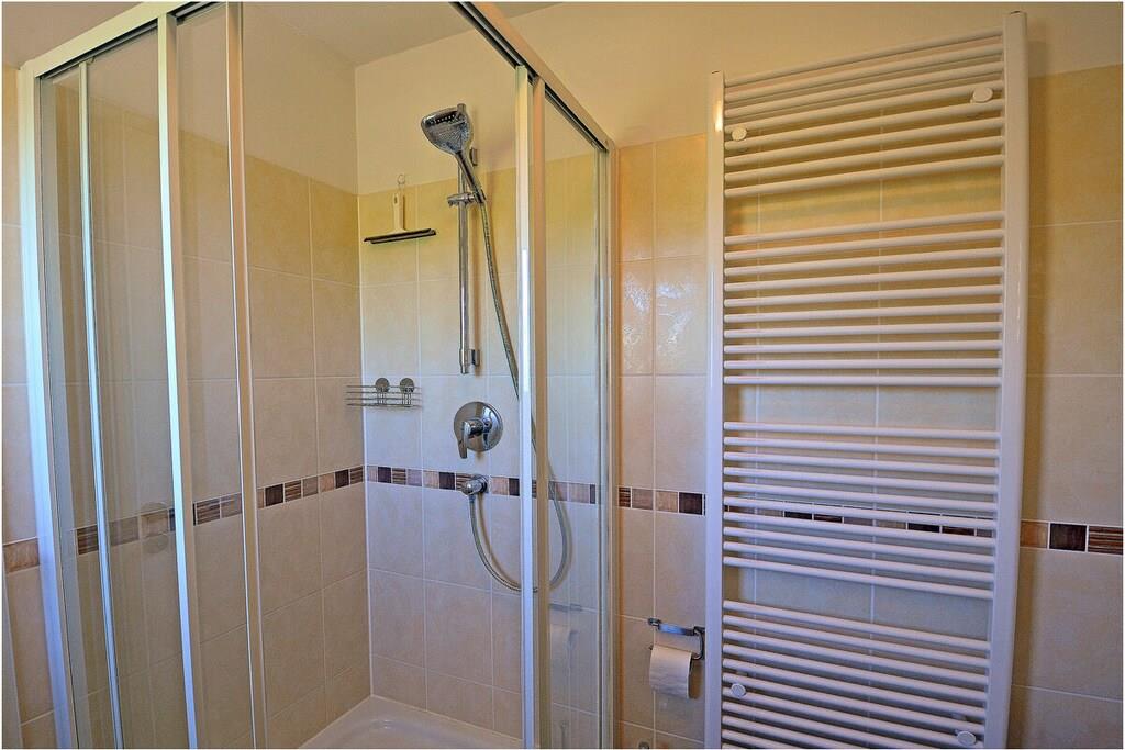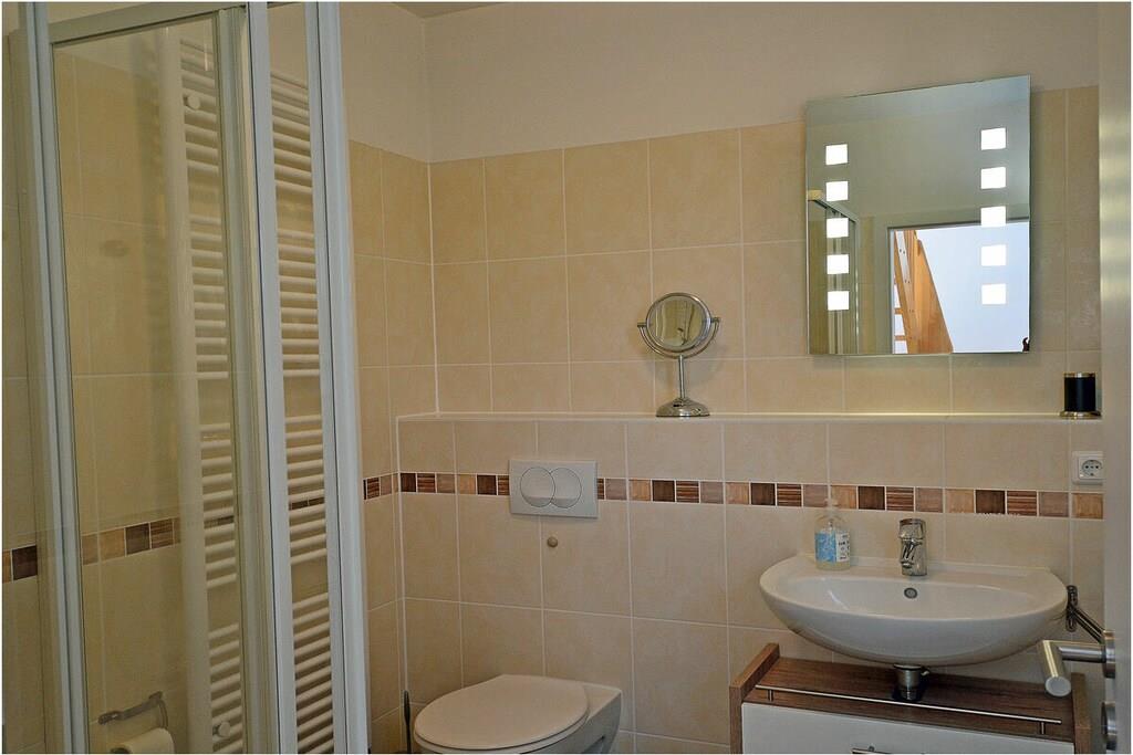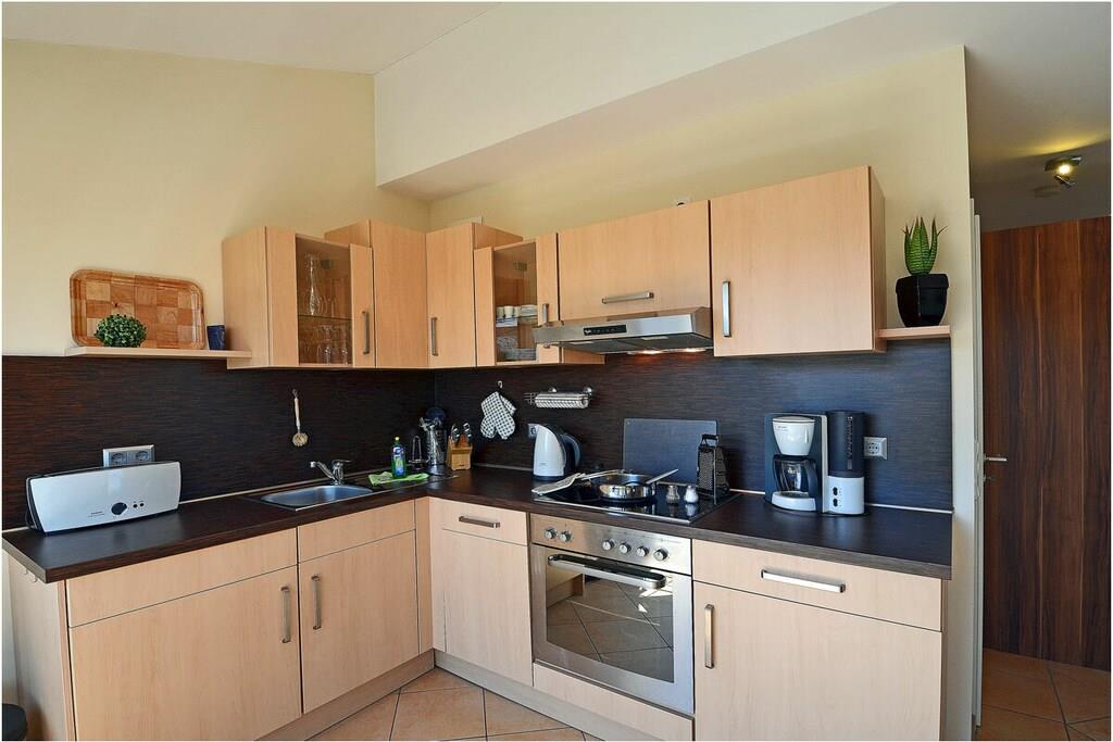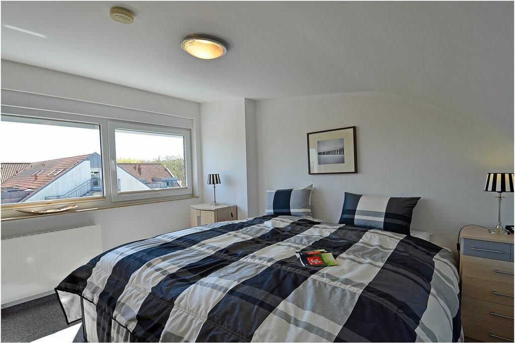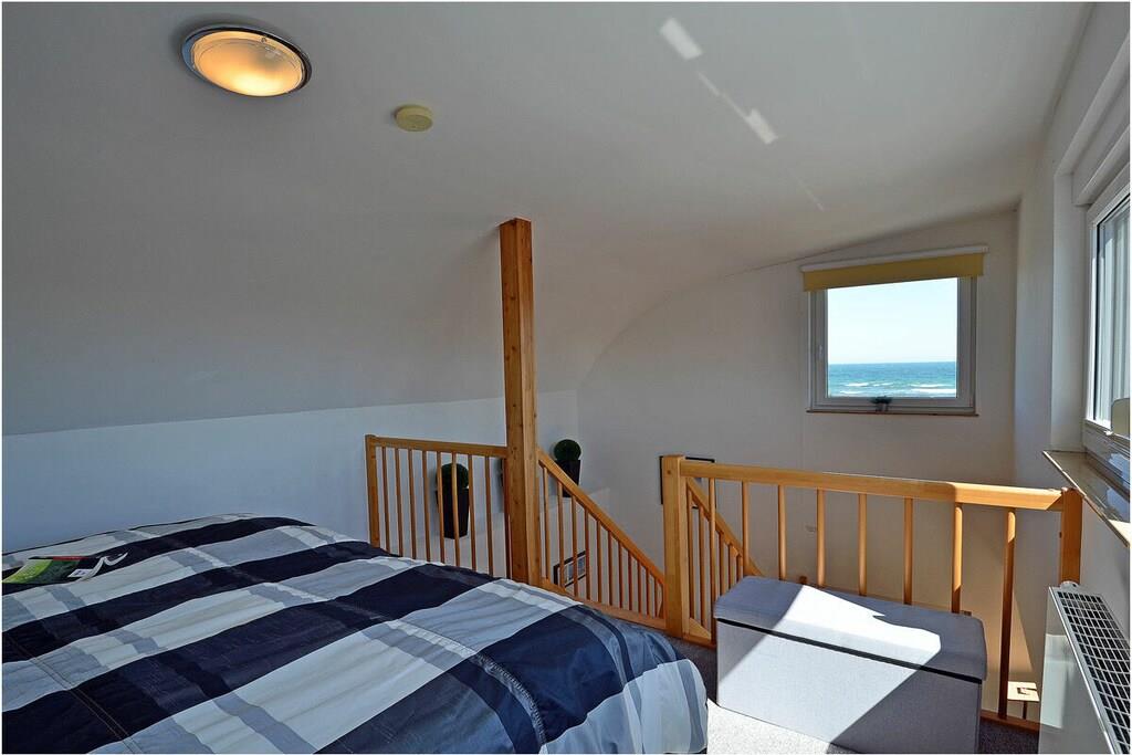 Eingangsbereich für Garderobe mit Kleiderschrank, Hauswirtschaftsraum und Staubsauger Wohn- & Essbereich mit gemütlicher Sofalandschaft mit Schlaffunktion 200cm x 140cm, Balkonzugang, TV/Sat (Flachbildschirm), Radio mit CD, DVD-Player, kostenfreies WLAN vorhanden, moderne offene komplett ausgestattete Einbauküche mit 4-Plattenherd (Ceranfeld), Backofen, Geschirrspüler, Kühlschrank mit kleinem Gefrierfach und diversen Elektrogeräten Schlafzimmer im Obergeschoss auf Galerie mit Meerblick, modernem Boxspringbett (2 Matratzen je 200cm x 90cm), Fliegengitter Badezimmer mit Dusche/WC, Handtuchhalter, Haarfön, Spiegel und Fenster Balkon mit Meerblick, Tisch mit vier Stühlen und Sonnenschirm Tiefgarage PKW-Stellplatz und Fahrradabstellmöglichkeit Fahrstuhl