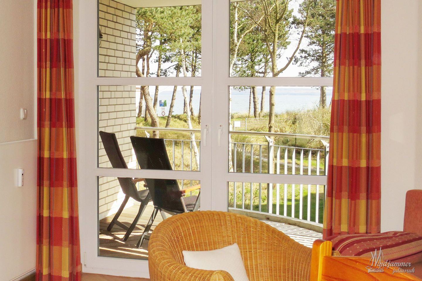 Charmante Ferienwohnung Windjammer mit Meerblick, Balkon und direktem Strandzugang auf Rügen.